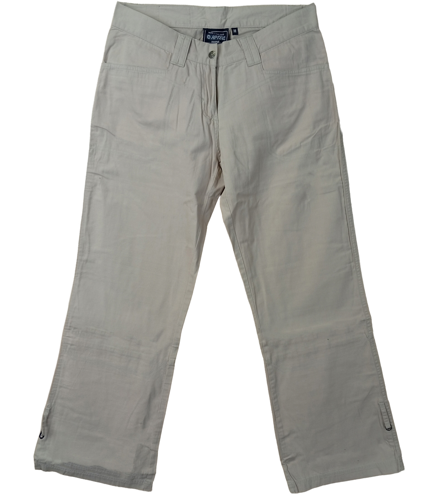 Tyto dámské kalhoty jsou pohodlnou a praktickou volbou pro aktivní dny i běžné nošení. Kalhoty mají klasické zapínání na knoflík a zip, poutka na pásek a ergonomicky tvarované švy, které podporují volnost pohybu.