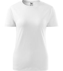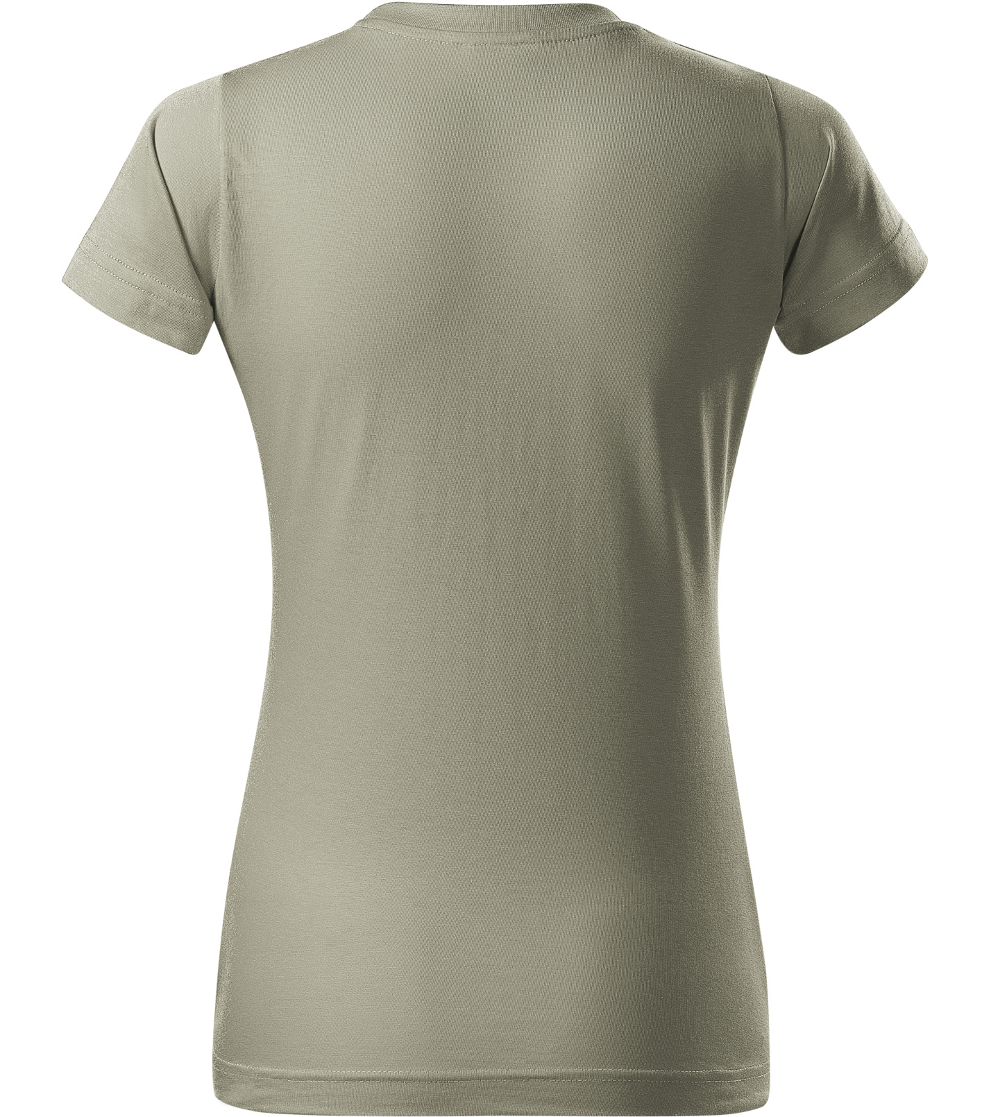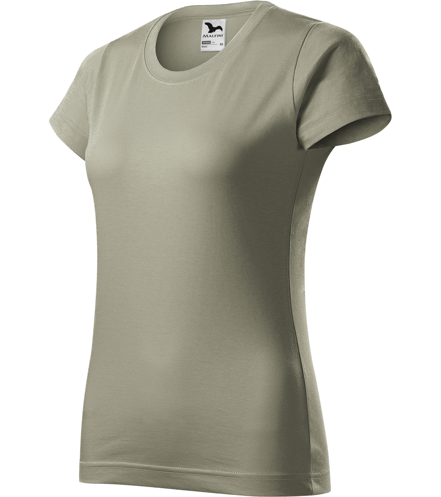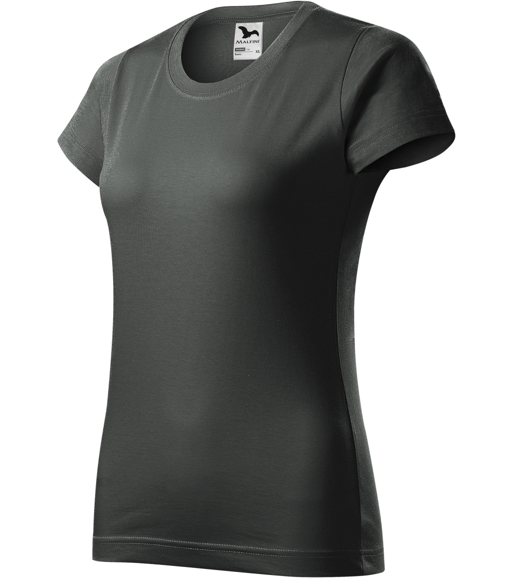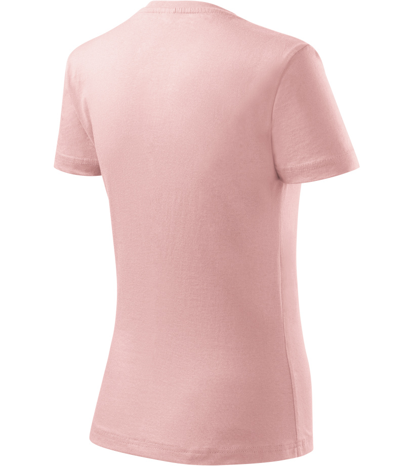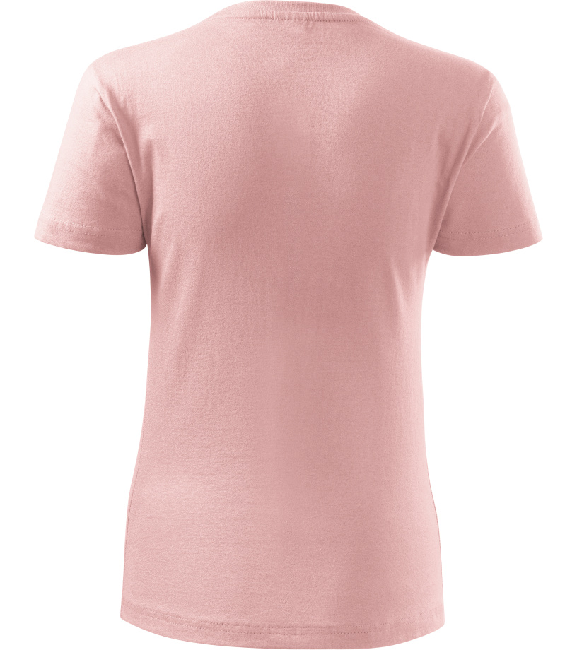 Kvalitní dámské tričko lehce projmutého střihu s bočními švy vhodné pro potisk a výšivky má úzký lem průkrčníku z žebrového úpletu 1:1 s 5 % elastanu, vnitřní část průkrčníku začištěna páskou z vrchového materiálu, zpevnění ramenních švů páskou a silikonovou úpravu.