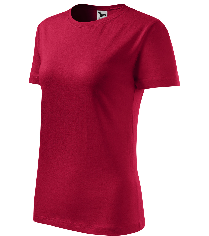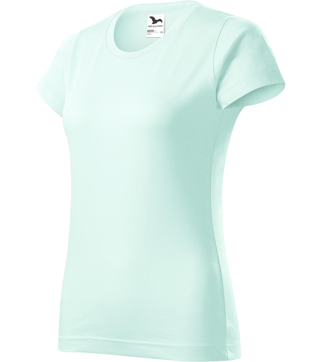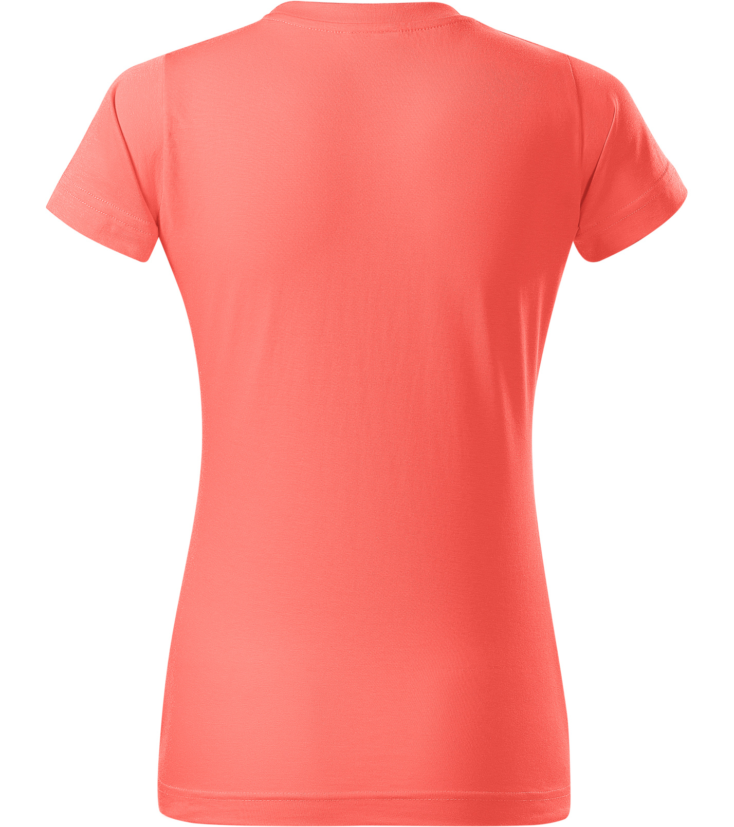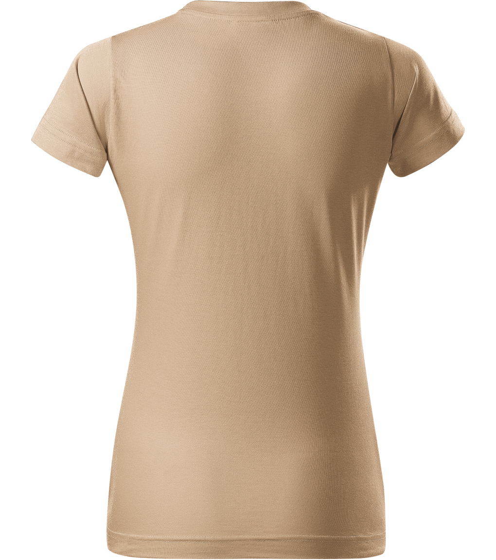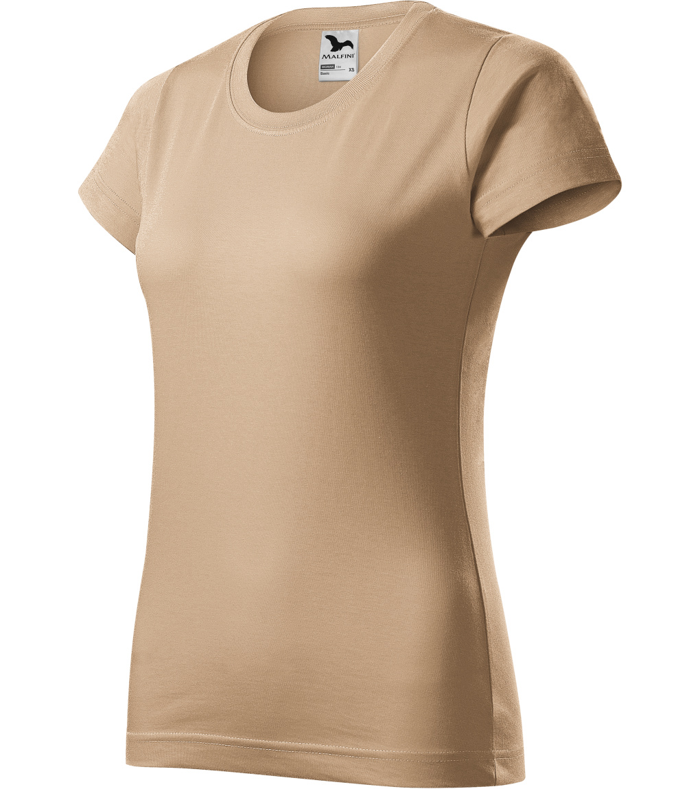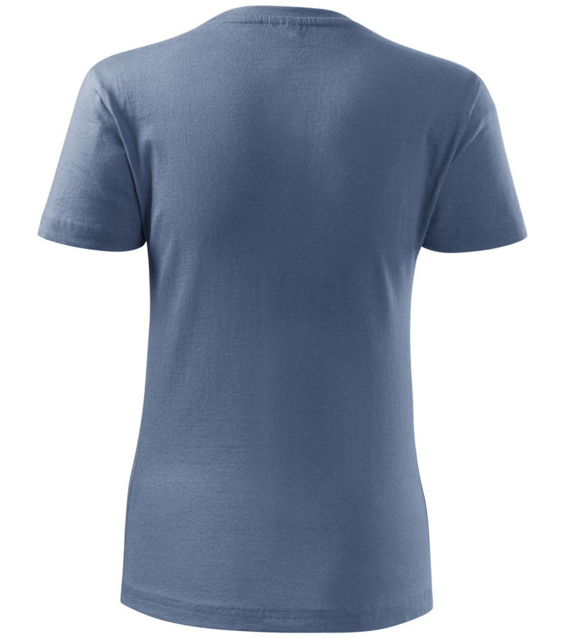 Kvalitní dámské tričko lehce projmutého střihu s bočními švy vhodné pro potisk a výšivky má úzký lem průkrčníku z žebrového úpletu 1:1 s 5 % elastanu, vnitřní část průkrčníku začištěna páskou z vrchového materiálu, zpevnění ramenních švů páskou a silikonovou úpravu.