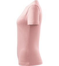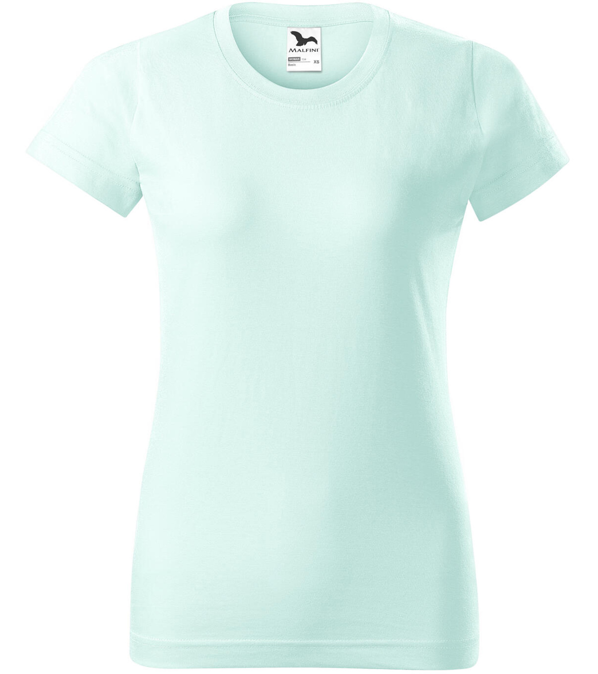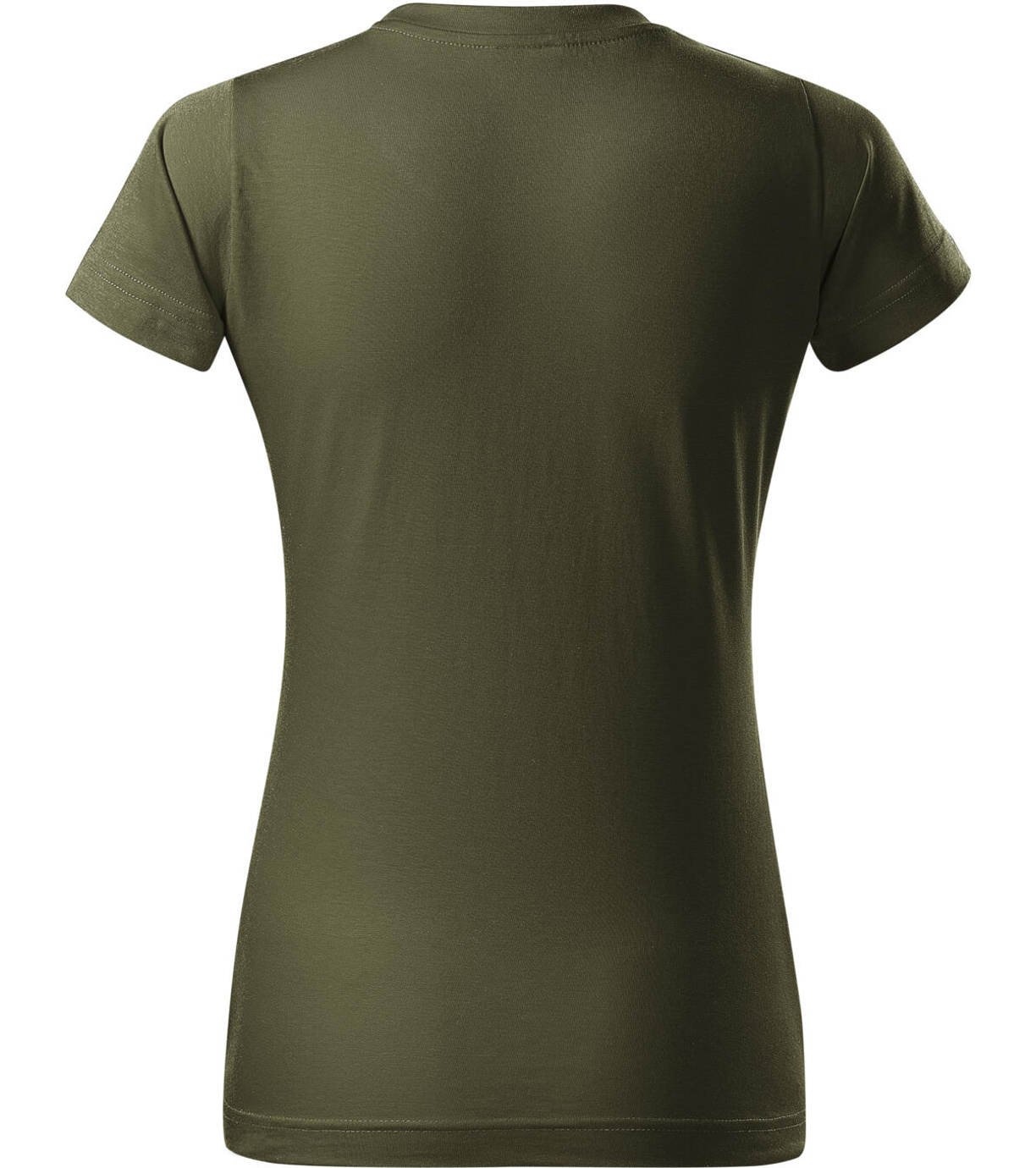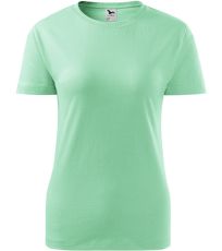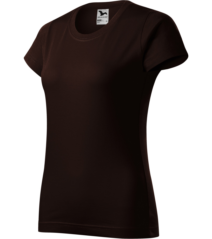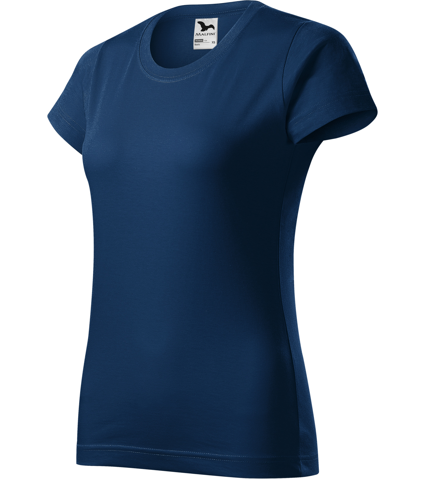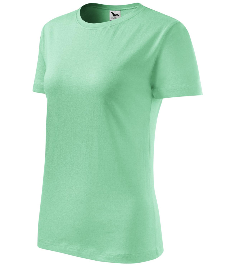 Kvalitní dámské tričko lehce projmutého střihu s bočními švy vhodné pro potisk a výšivky má úzký lem průkrčníku z žebrového úpletu 1:1 s 5 % elastanu, vnitřní část průkrčníku začištěna páskou z vrchového materiálu, zpevnění ramenních švů páskou a silikonovou úpravu.