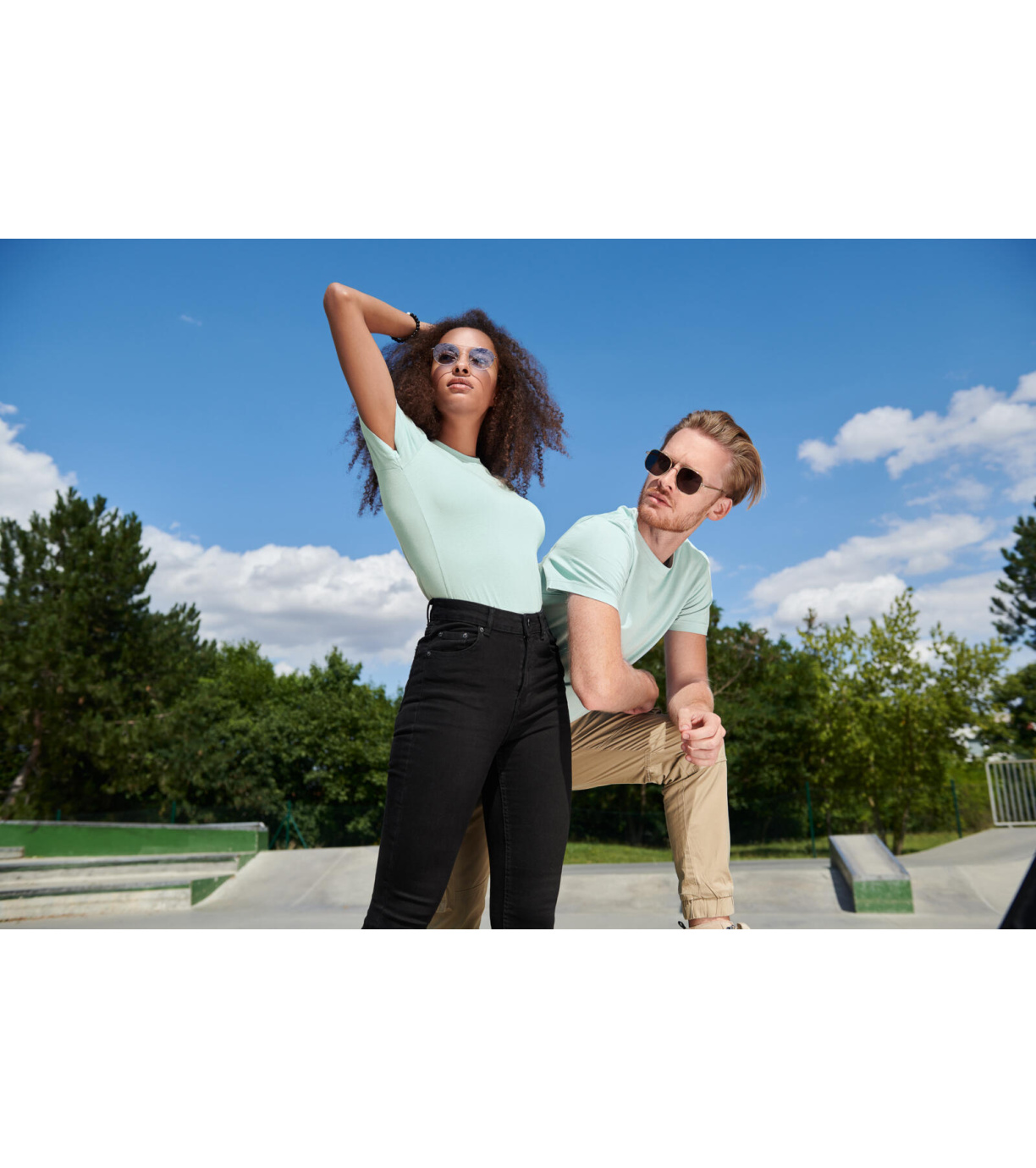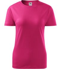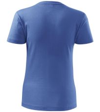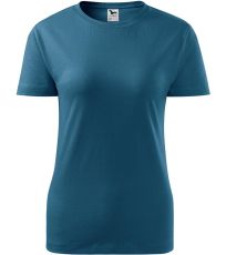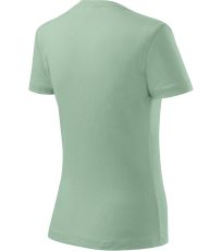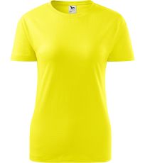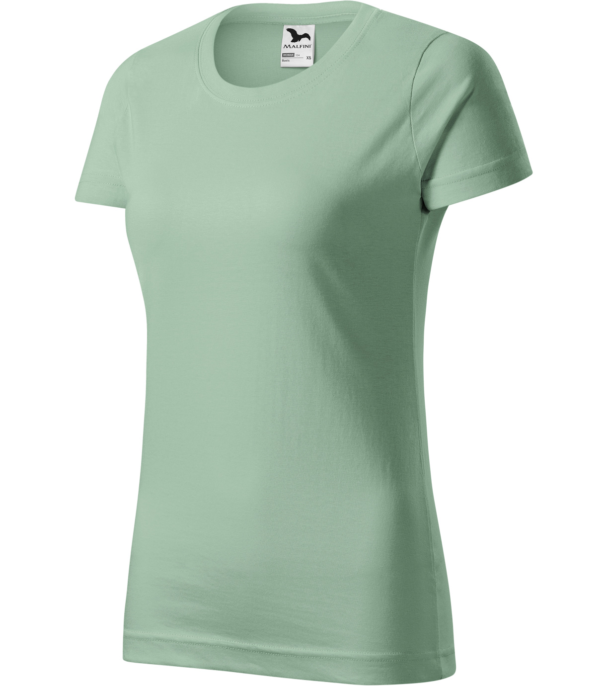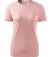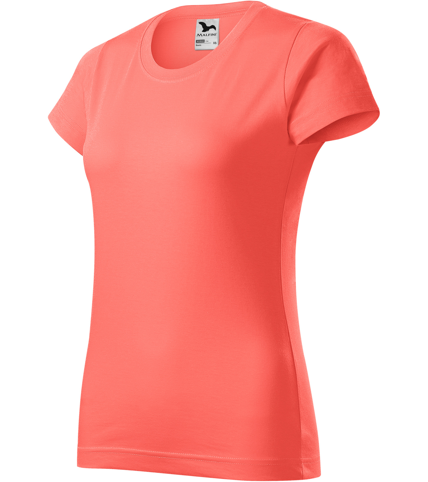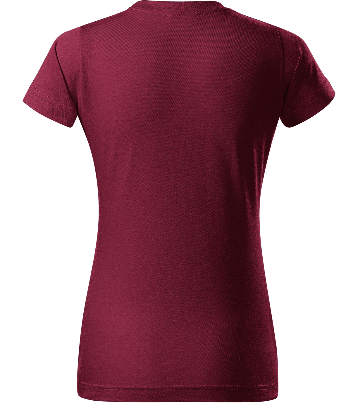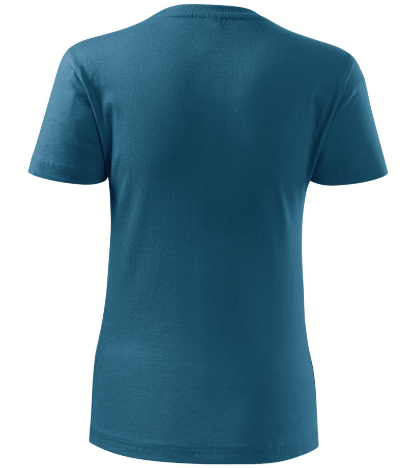 Kvalitní dámské tričko lehce projmutého střihu s bočními švy vhodné pro potisk a výšivky má úzký lem průkrčníku z žebrového úpletu 1:1 s 5 % elastanu, vnitřní část průkrčníku začištěna páskou z vrchového materiálu, zpevnění ramenních švů páskou a silikonovou úpravu.