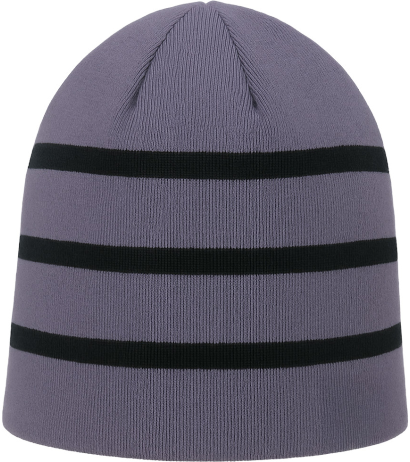 Pletená čepice v šedofialové barvě s černými vodorovnými pruhy. Vyrobená z měkkého, pružného a hřejivého materiálu, který se přizpůsobí tvaru hlavy a poskytuje maximální pohodlí. Ideální pro chladné podzimní a zimní dny - hodí se jak ke sportovnímu, tak k městskému outfitu. Univerzální doplněk, který skvěle kombinuje jednoduchý design a funkčnost.