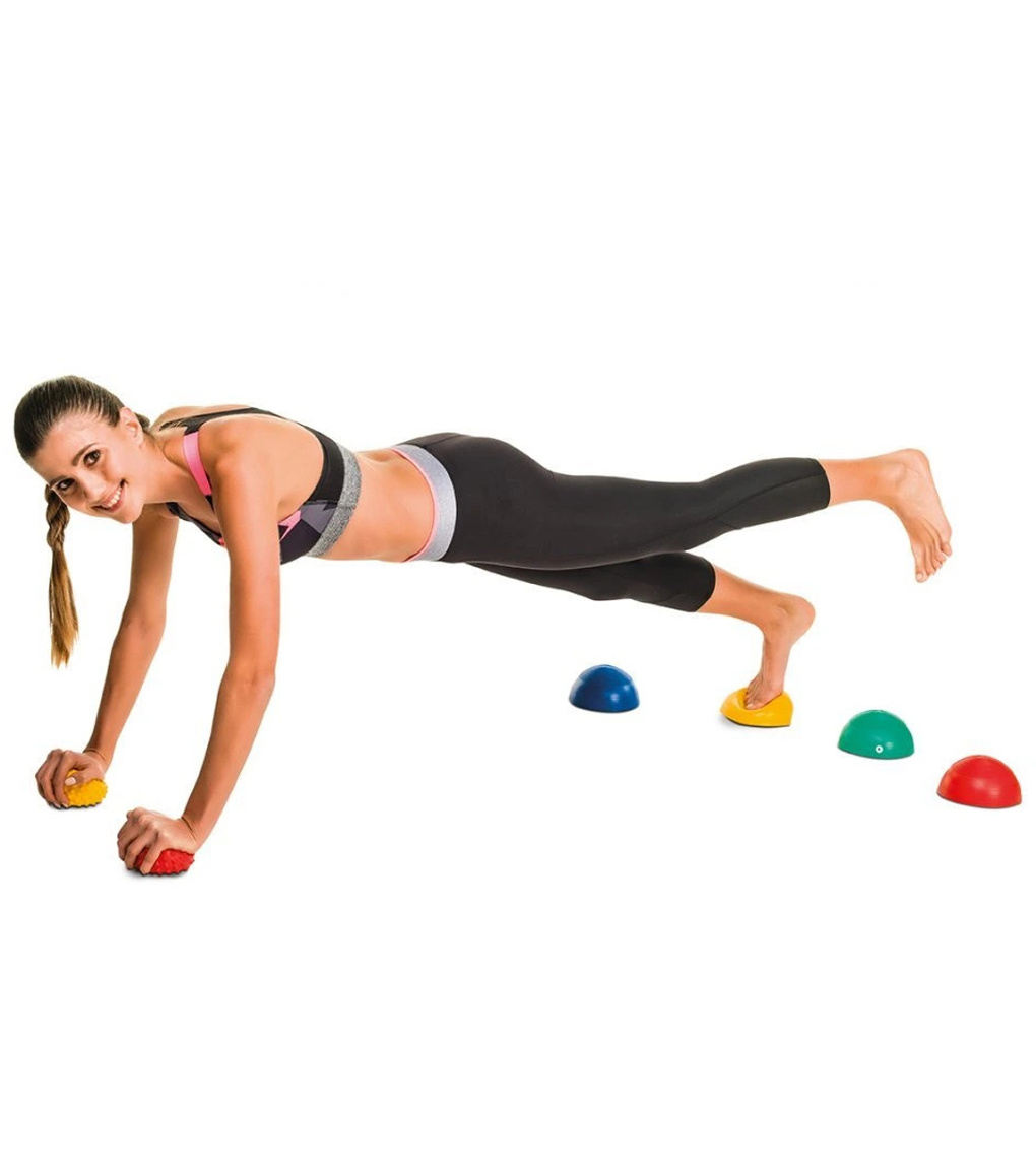 Polokoule Half Ball s rýhami o průměru 14 cm se používají k tréninku rovnováhy, zlepšují koordinaci, ohebnost a vnímavost. Dovolují stabilnější fixování k podlaze a s variací tlaku této pomůcky může člověk snadno a efektivně měnit stupeň obtížnosti cvičení. Polokoule Half Ball jsou ideální pro lyžařský výcvik, přípravu sportovních mužstev a rehabililitaci ve fyzioterapii. Senzorické postupy mají velký význam jak pro podální, tak pro manuální motorickou koordinaci, stejně jako pro stimulaci rovnováhy a správné polohy těla v časoprostorové dimenzi. Díky zvláštnímu tvarování míče HalfBall ø 14 cm je jeho ukotvení k podlaze bezpečné a obtížnost cvičení lze jednoduše měnit změnou tlaku na míč. Zvýšené linie na povrchu zajišťují intenzivní proprioceptivní a reflexogenní působení. Polokoule jsou indikovány zejména v předlyžařských trénincích, týmové sportovní přípravě, při proprioceptivních a balančních cvičeních, v posturální gymnastice a rehabilitaci po fyzioterapeutické rehabilitaci při patologických stavech kotníku. Doporučujeme kupovat aspoň po 2 ks (na každou nohu 1 ks). Cena za kus.
