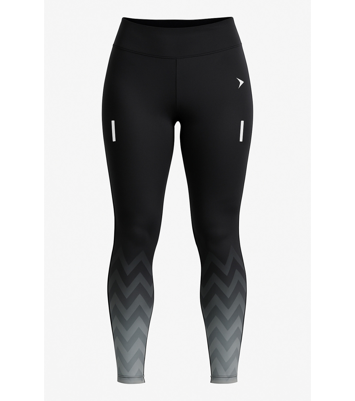 Dámské sportovní legíny v elegantní černé barvě s decentním šedým vzorem na spodní části nohavic jsou ideální pro běh, fitness i jiné sportovní aktivity. Jsou vyrobeny z pružného, prodyšného a rychleschnoucího materiálu, který se dokonale přizpůsobí postavě a poskytuje maximální pohodlí při pohybu. Legíny mají široký pas pro jisté držení, reflexní prvky pro lepší viditelnost a praktickou kapsu na drobnosti. Styl a funkčnost v jednom.