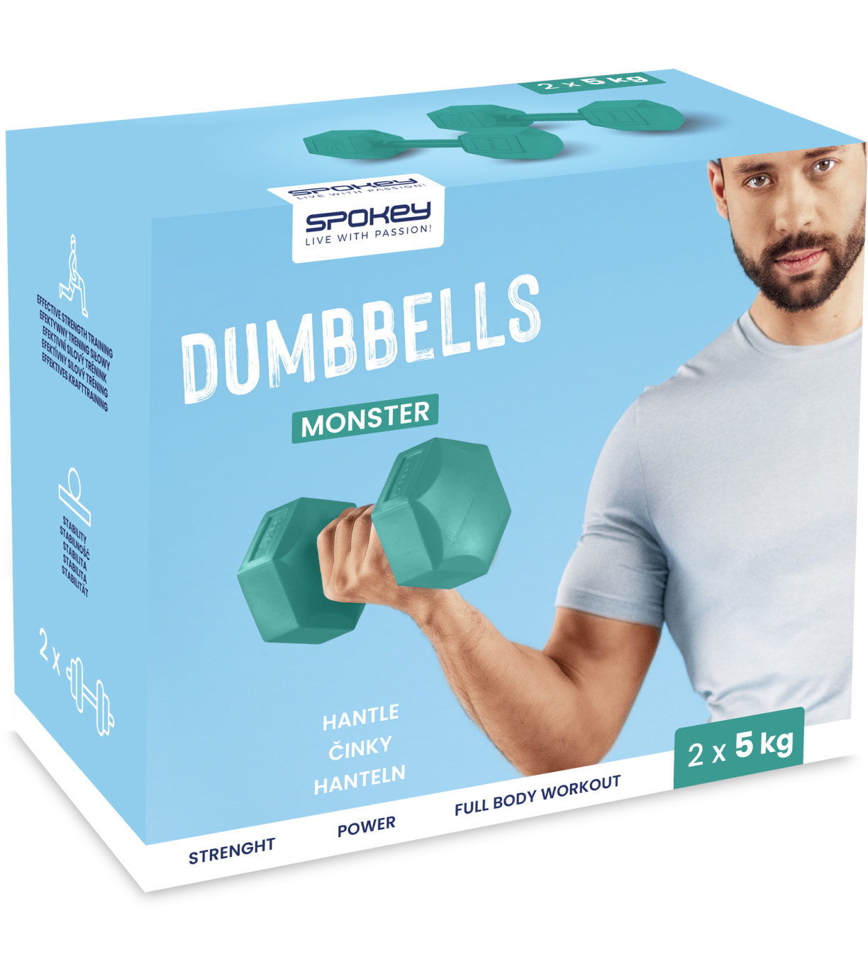 Sada dvou šestihranných činek Spokey MONSTER se nejlíp osvědčí při posilování různých svalových skupin, zvláště pak při posilování rukou a bicepsů. Škála cviků, které s nimi lze vykonávat je však mnohem širší! Činky Spokey MONSTER můžete využít také během kondičního tréninku, aerobiku, joggingu, všeobecných rozvojových cvičeních nebo během rozcvičky před tréninkem s vyšší zátěží. Činky jsou dostupné v různých hmotnostních (od 1 do 6 kg) a barevných provedeních. Díky tomu si uživatel sám zvolí hmotnost, která vyhovuje jeho tréninkovým možnostem a cílům.