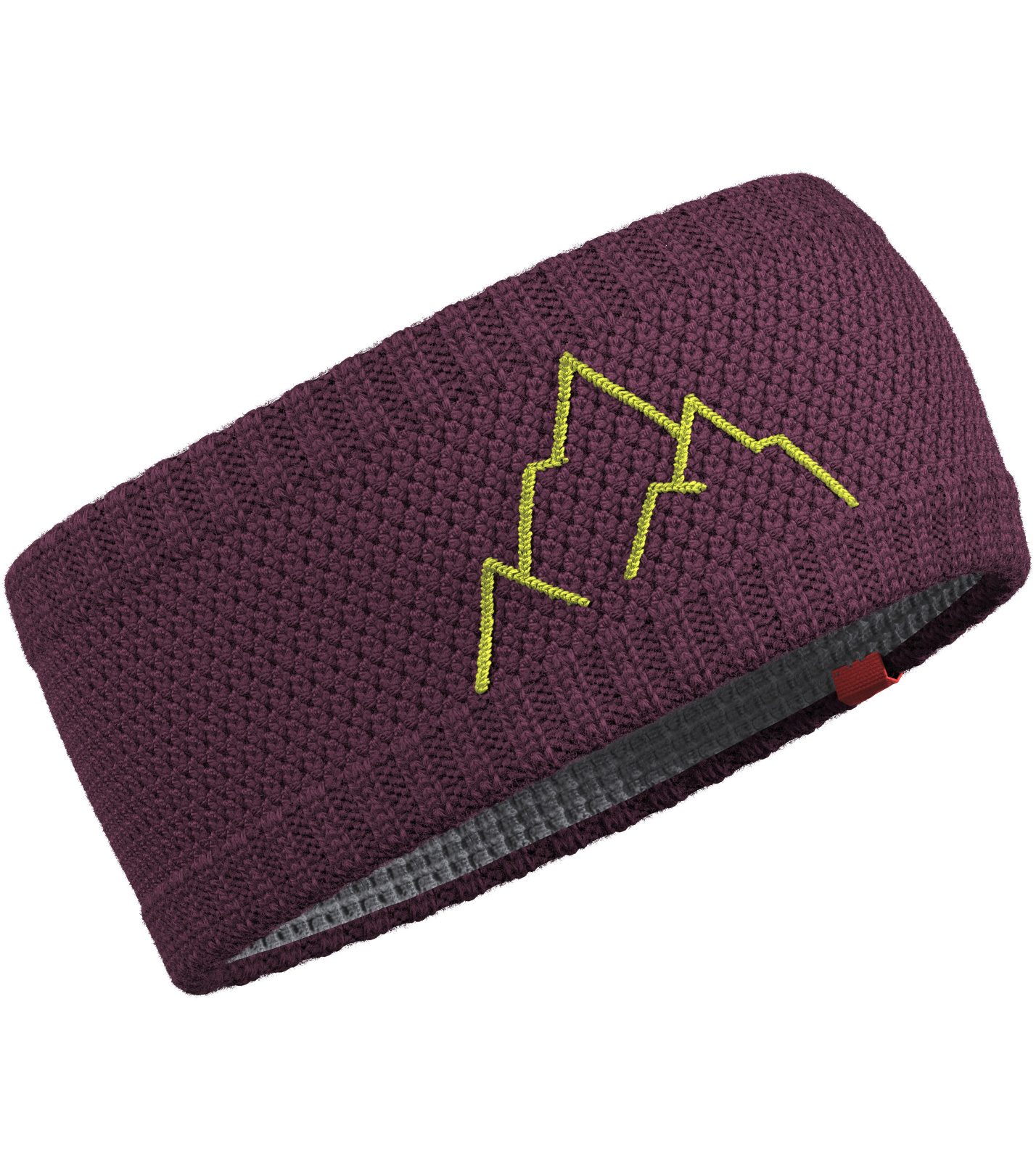 Pletená čelenka z merino vlny s barevně kontrastní výšivkou. Na vnitřní straně má čelenka funkční syntetickou podšívku. Klasický způsob pletení čelenky přechází na krajích k žebrovanému úpletu , který se dobře přizpůsobí obvodu hlavy a zároveň působí jako dekorativní prvek. Moderní design čelenky v přírodním materiálu dokresluje kontrastní výšivka hor.