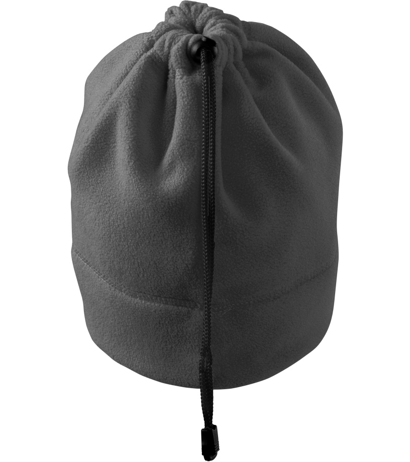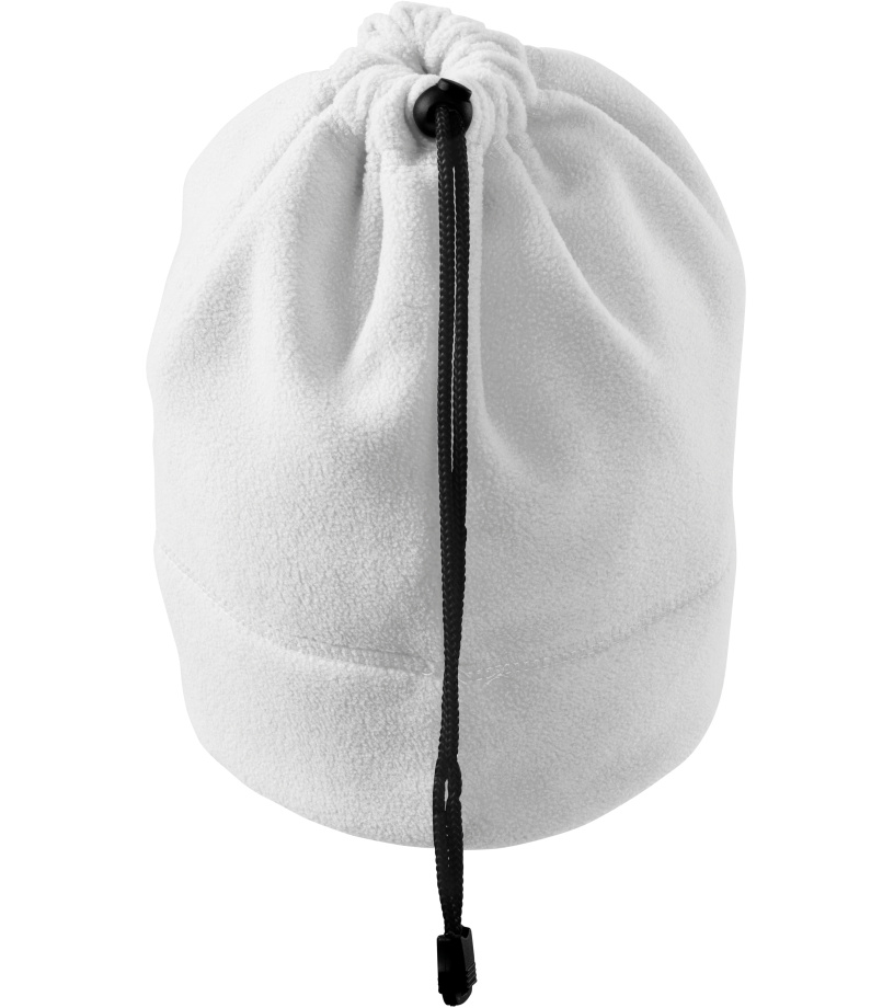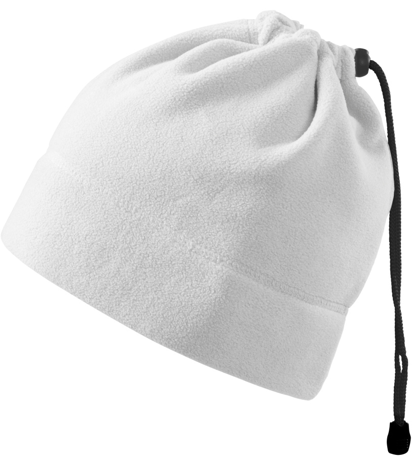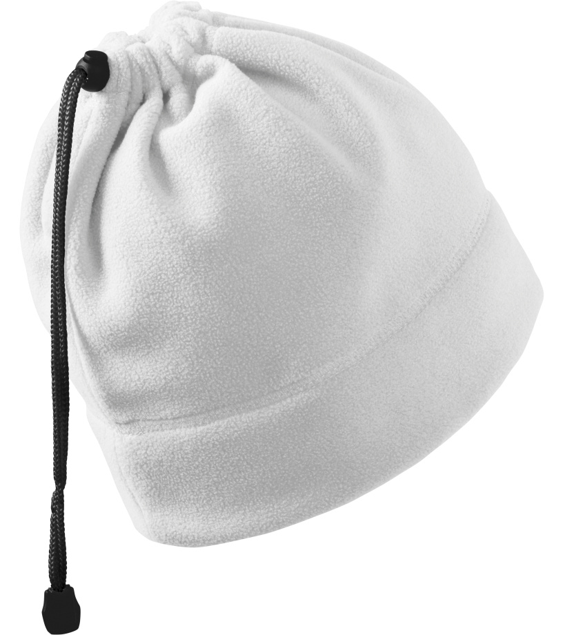 Praktická unisexová fleecová čepice 2v1 - čepice a nákrčník z hřejivého materiálu a z jedné strany na stažení šňůrkou v barvě 01 vhodná pro výšivky a gravírování má antipillingovou úpravu z vnější strany a dekorativní prošití.
