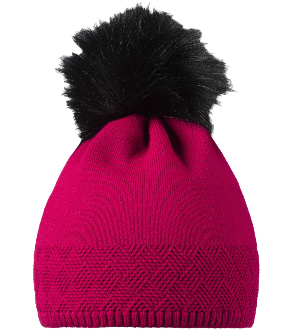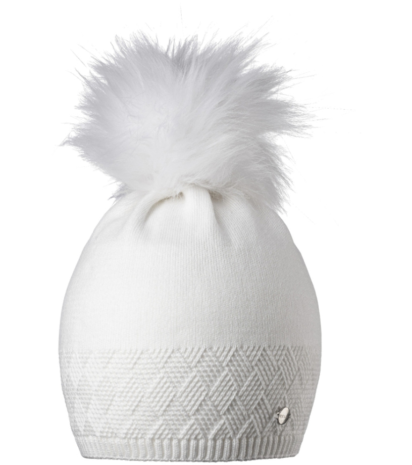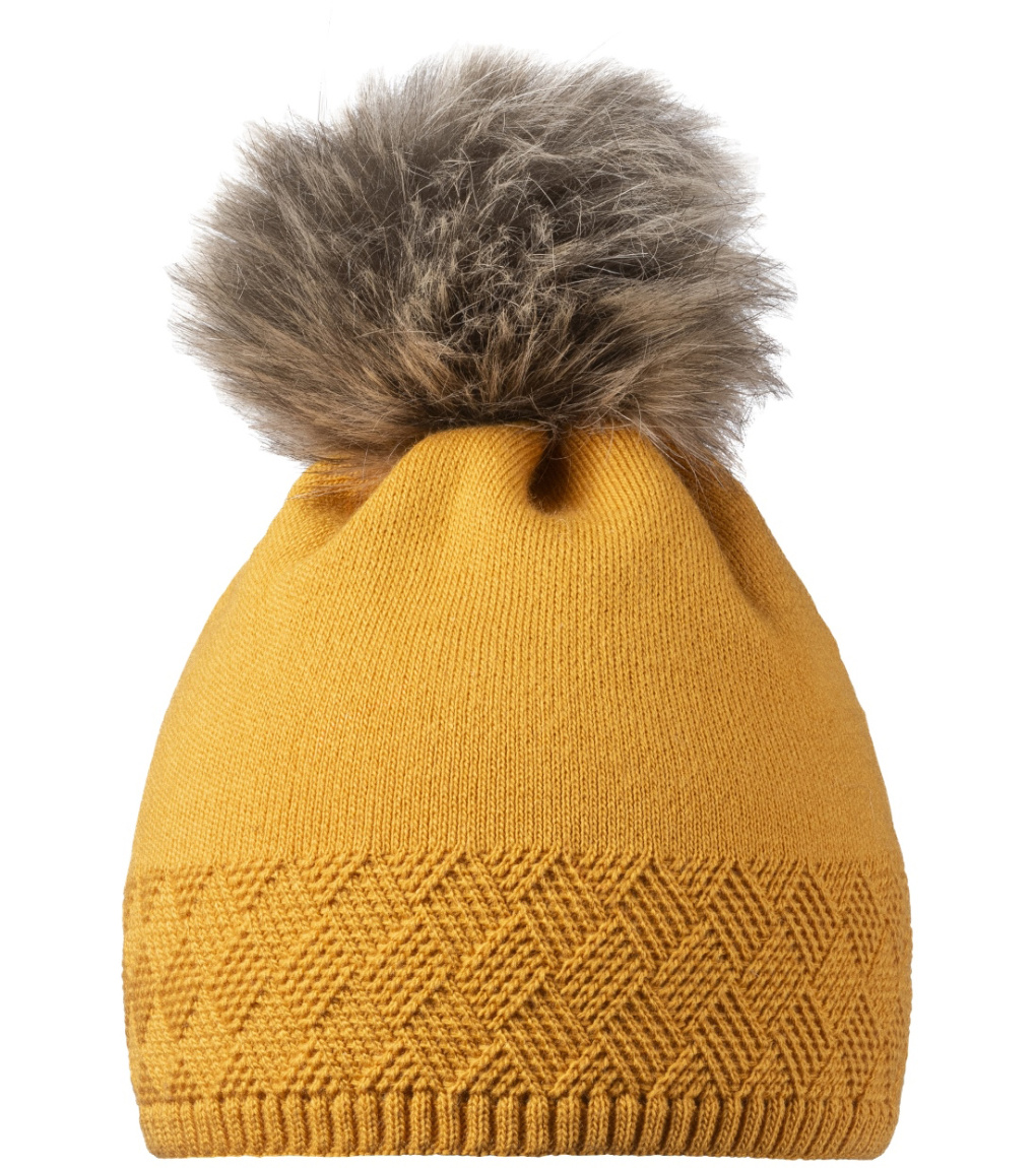 Elegantní dámská zimní čepice s bambulí z umělé kožešiny s jemným plastickým vzorem.