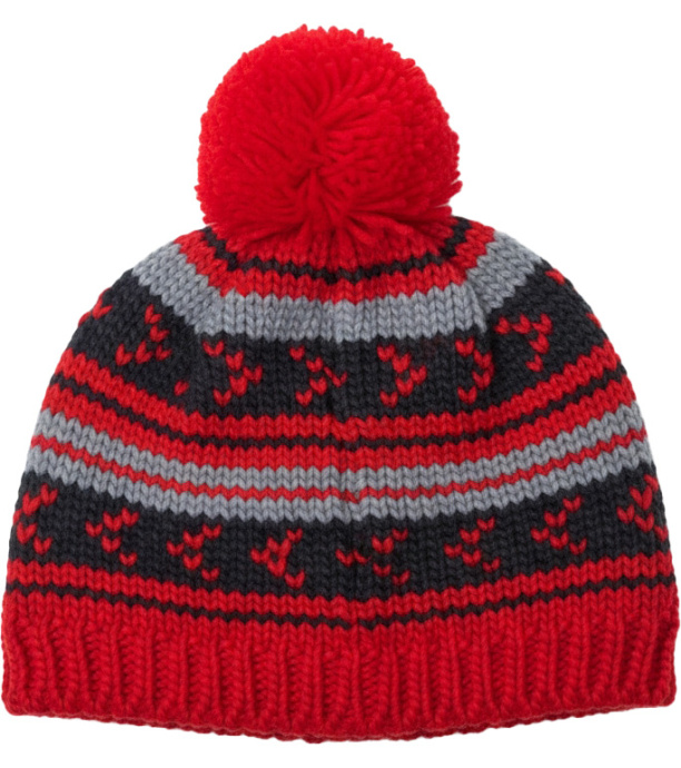 Hřejivá pletená zimní čepice s výrazným barevným vzorem, která zaujme na první pohled. Velká bambule na vrchu podtrhuje zimní styl a dodává čepici moderní nádech.