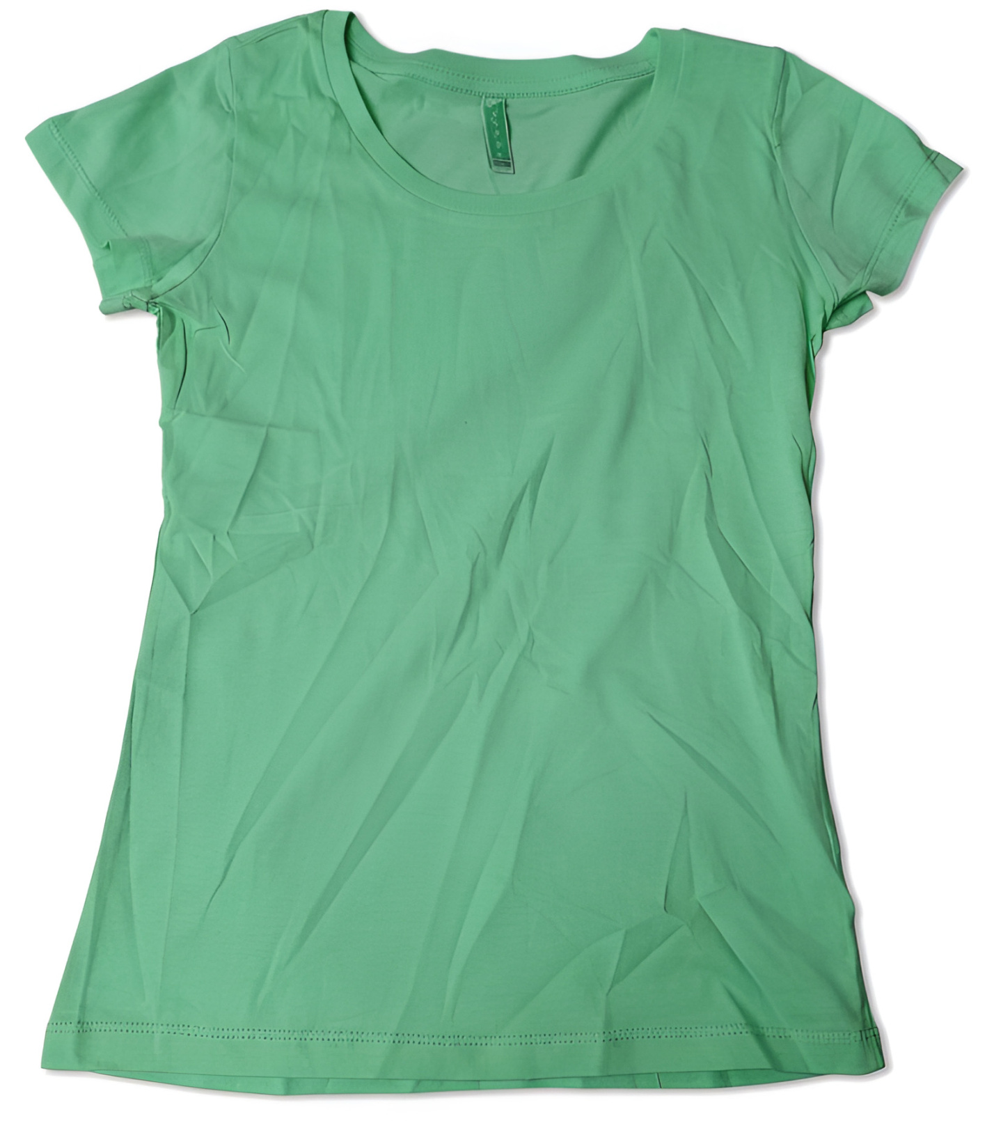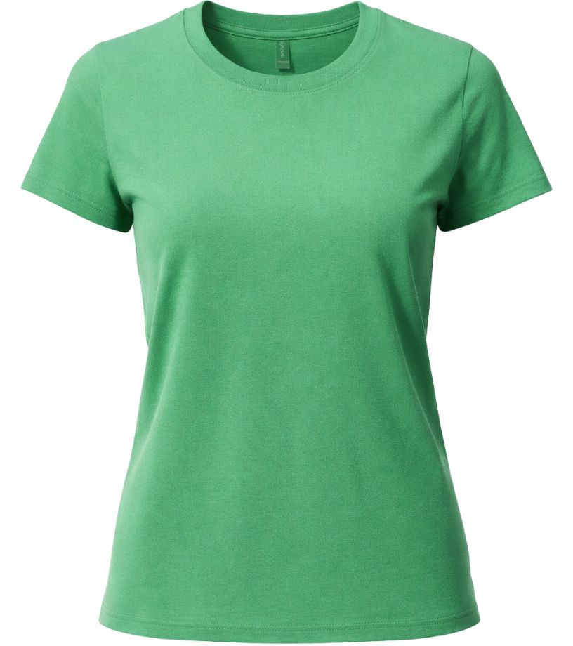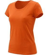 Dámské tričko s vyštíhleným střihem a hlubším kulatým výstřihem. Výstřih je lemován pružným žebrovaným lemem (1,2 cm) s příměsí spandexu pro lepší tvarovou stálost. Tričko má krátké přiléhavé rukávy, postranní švy pro pohodlnější nošení a dvojjehlové prošití na ramenou. Vnitřní část límečku a pásky jsou z bavlny pro vyšší komfort.