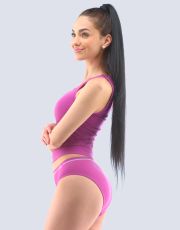 Tílko se širšími ramínky, dámské bezešvé prádlo. Dolní kraj je zapravený bezešvým způsobem. V průramcích a průkrčníku je zašitá úzká pruženka. Ramínka se na předním díle mírně zužují, čímž se vytváří pěkně tvarovaný dekolt. Tílko je jednobarevné. Je bez loga. Tílko je v prodloužené délce.