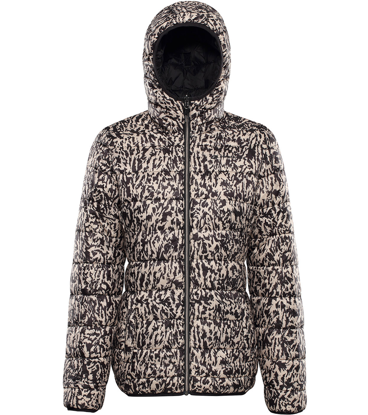 Střih je polopřiléhavý, což zvýrazňuje dámskou siluetu a zároveň ponechává dostatek prostoru pro volný pohyb. Neodepínatelná kapuce chrání před větrem a deštěm, praktické kapsy (celkem čtyři) umožňují uschování drobností. Styl PUFFY podtrhuje objemný a zároveň elegantní vzhled. Díky oboustrannému provedení lze bundu nosit dvěma způsoby – buď s decentní vnější stranou s potiskem na předním díle, nebo s originální kontrastní podšívkou, která se stává dominantou outfitu.