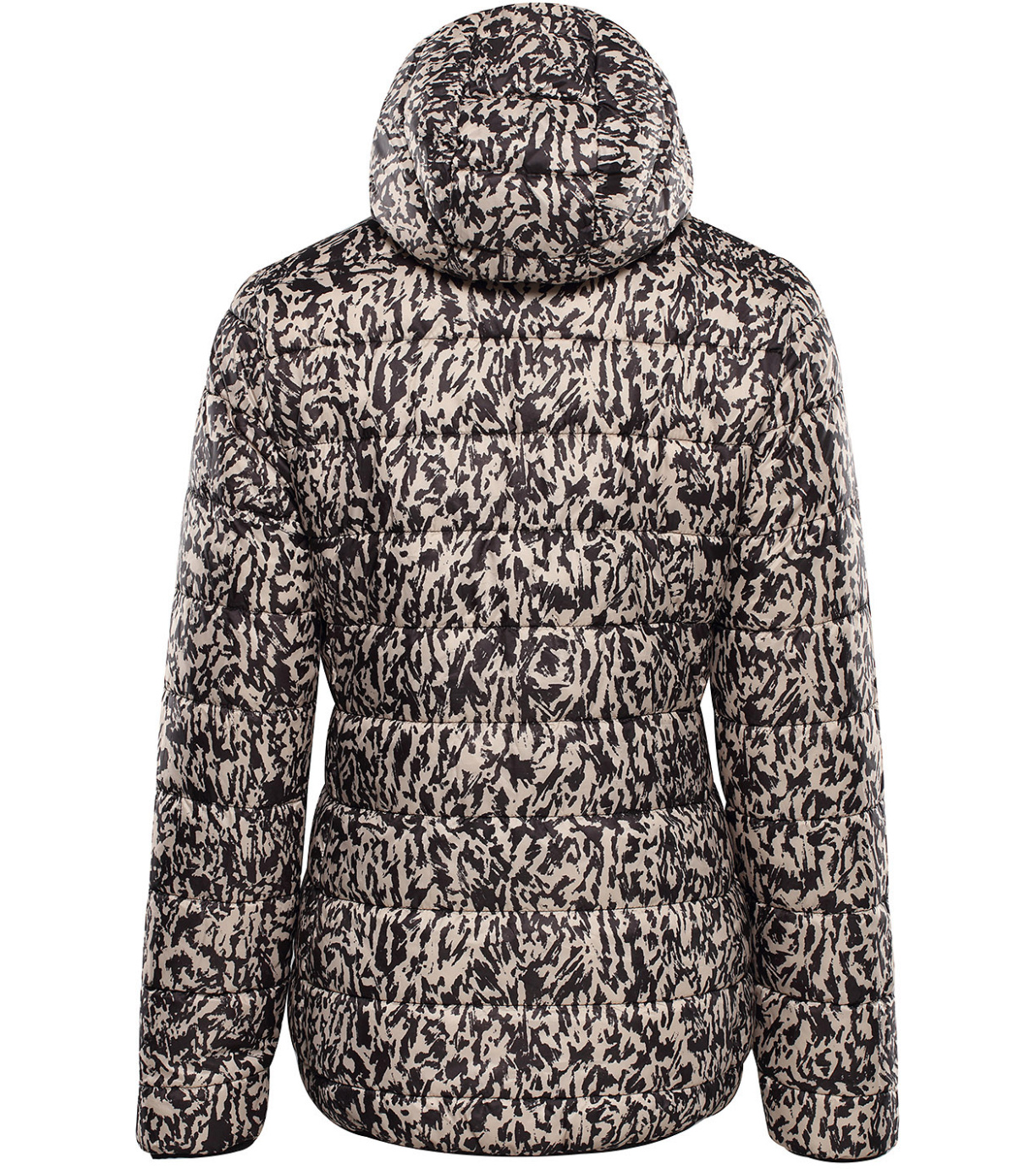 Dámská oboustranná bunda je moderní a praktický kousek, který v sobě spojuje styl i funkčnost. Je vyrobena ze 100% nylonu s vodoodpudivou a větruodolnou úpravou, díky níž poskytuje spolehlivou ochranu v proměnlivém počasí. Ultralehký materiál s povrchovou úpravou Teflon EcoElite™ zajišťuje pohodlné nošení a snadnou údržbu. Bunda je vyplněna silnou výplní, která výborně izoluje a udržuje teplo, zatímco kontrastní potištěná podšívka dodává celkovému vzhledu výrazný módní akcent.