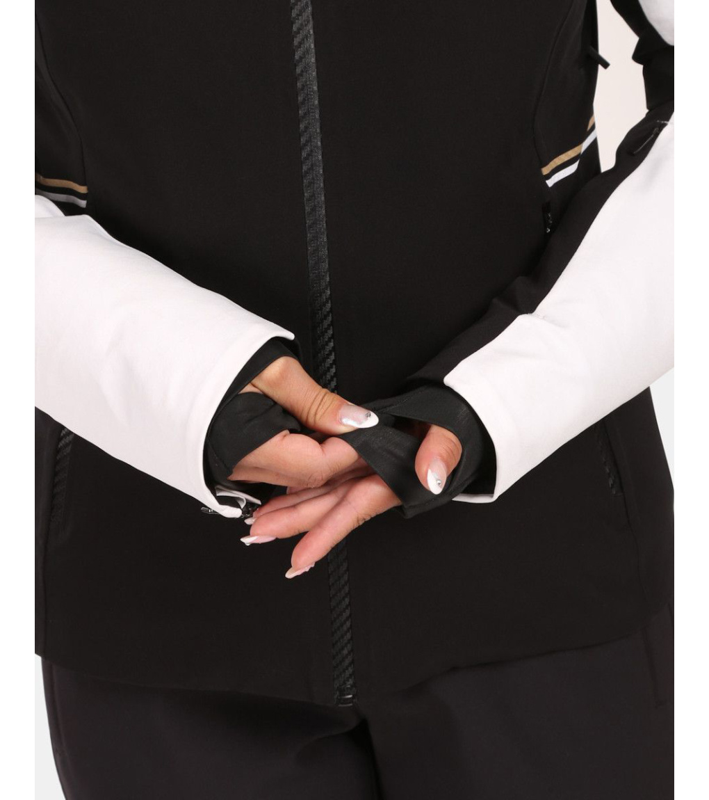 Všitá ochraná sněhová manžeta, která zabraňuje pronikání sněhu pod oděv. Ve spodní části je našita elastická protismyková guma.
