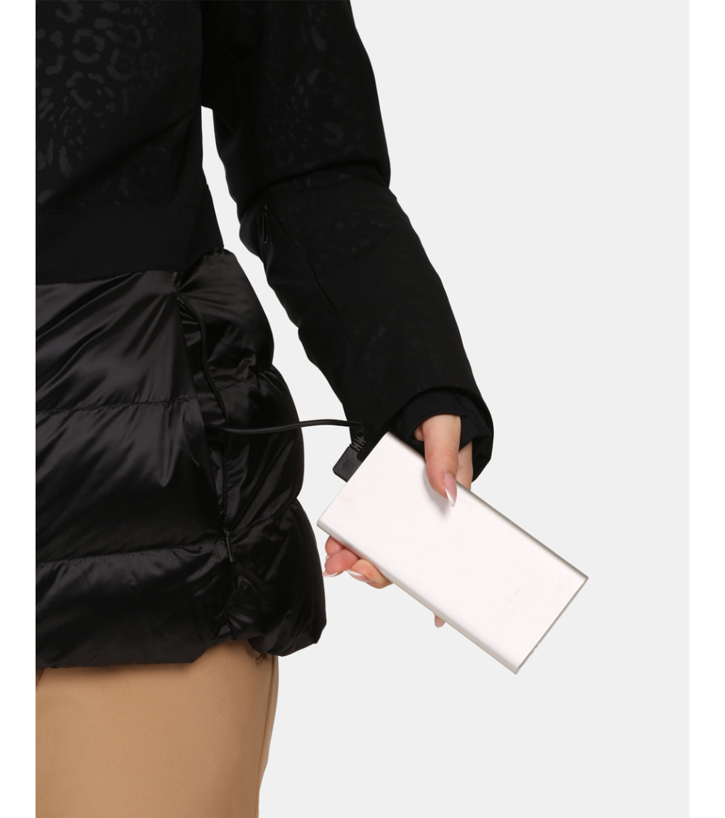 Integrovaný vyhřívací systém, který aktivujete stisknutím tlačítka na paži po připojení powerbanky (powerbanka není součástí bundy) do USB konektoru, umístěného v kapse bundy. Vyhřívání nabízí 3 teplotní režimy.