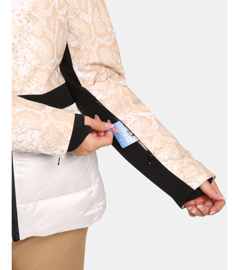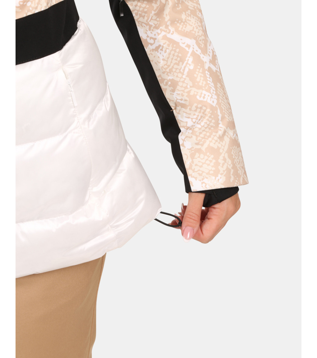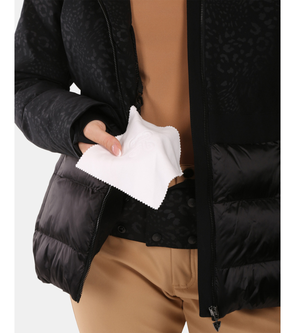 Praktické detaily, jako jsou rukávy s manžetami a zipy, odnímatelný protisněhový pás, dvě nenápadné hlavní kapsy, náprsní kapsa a vnitřní kapsa s hadříkem na brýle, zvyšují pohodlí během každého lyžařského dne. Tato bunda je navržena tak, aby vám poskytla maximální komfort, teplo a ochranu, zatímco její elegantní vzhled zaručí, že na svahu budete vždy vypadat skvěle a užijete si zimní radovánky naplno.