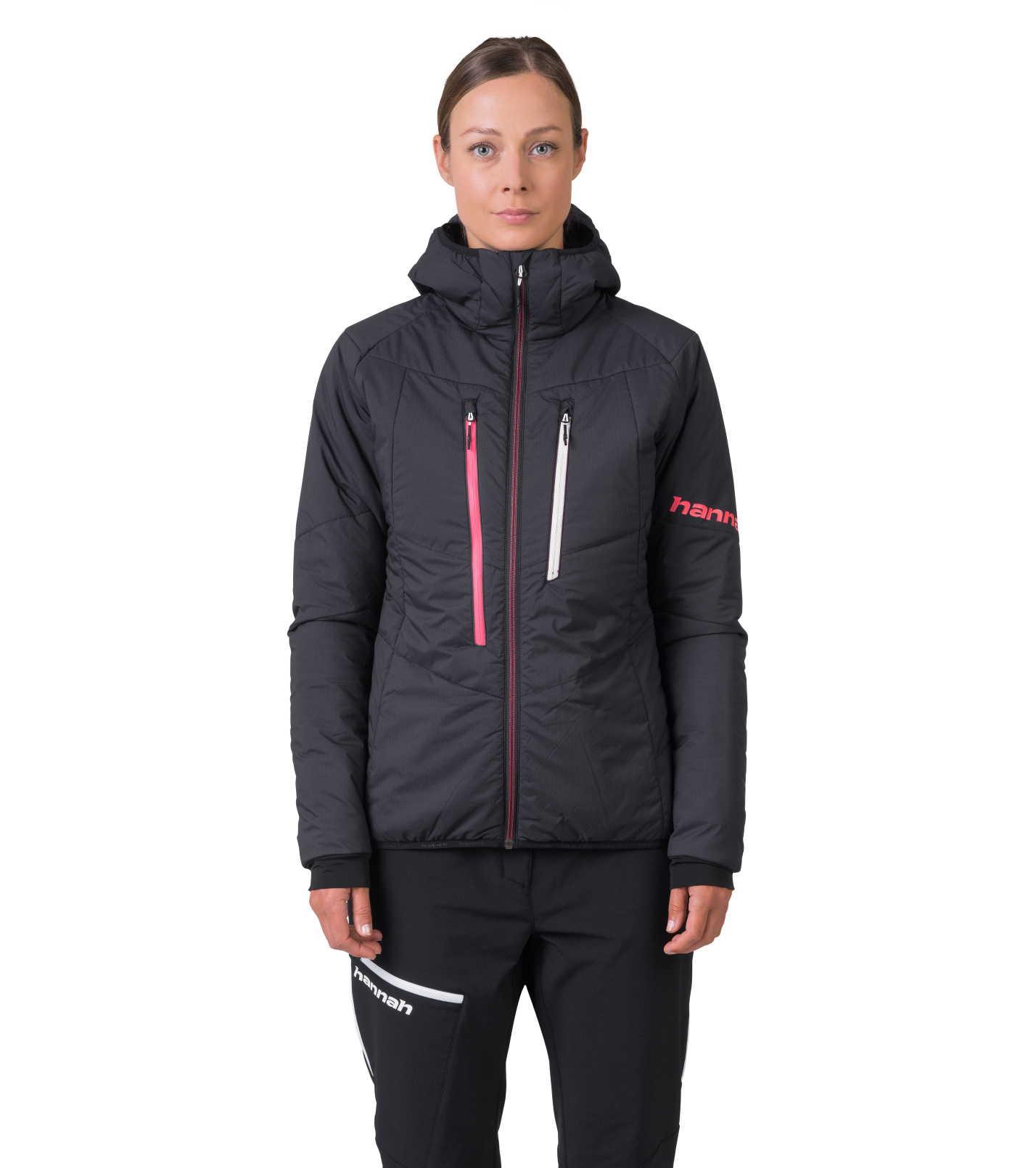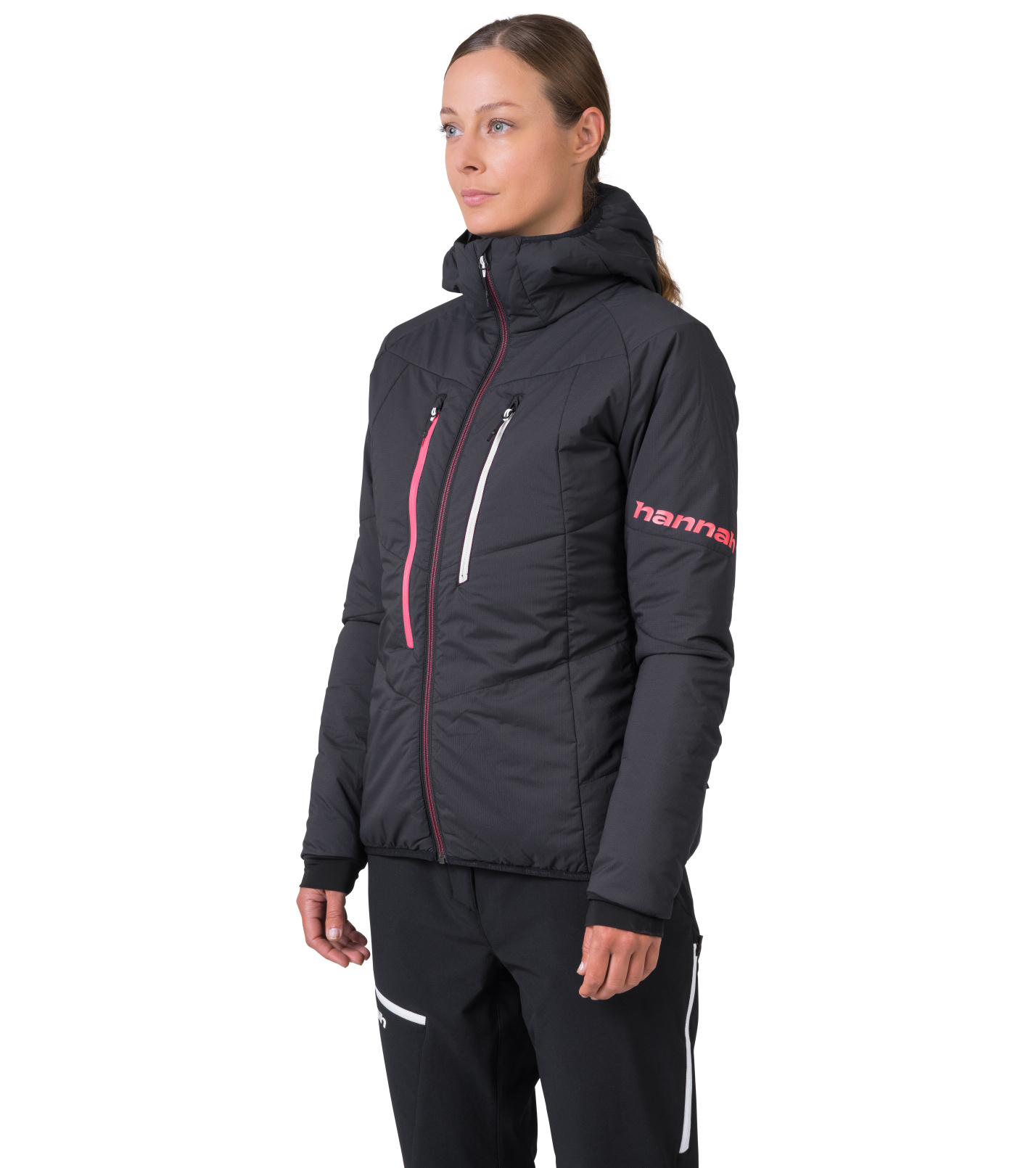 Zateplená dámská skialpová bunda Hannah Gabby Hoody s izolací Primaloft Silver Active s ochranou Airlite Windproof a AFT Double Weave pro zajištění ochrany proti větru a dešti, odolnost vůči oděru a rychlý odvod vlhka. To vše při pouhých 380 g.