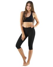 Capri legíny, dámské šité sportovní prádlo. Pasový lem je dvojitý a našitý plochým švem. Legíny jsou jednobarevné. V dolní části levé nohavice je našitý tkaný štítek s logem. V zadním díle je umístěna malá praktická kapsička na drobnosti. Vzhledem k vyšší gramáži použitého materiálu jsou legíny velmi univerzální a vhodné jak pro různé sportovní aktivity, tak pro volný čas.