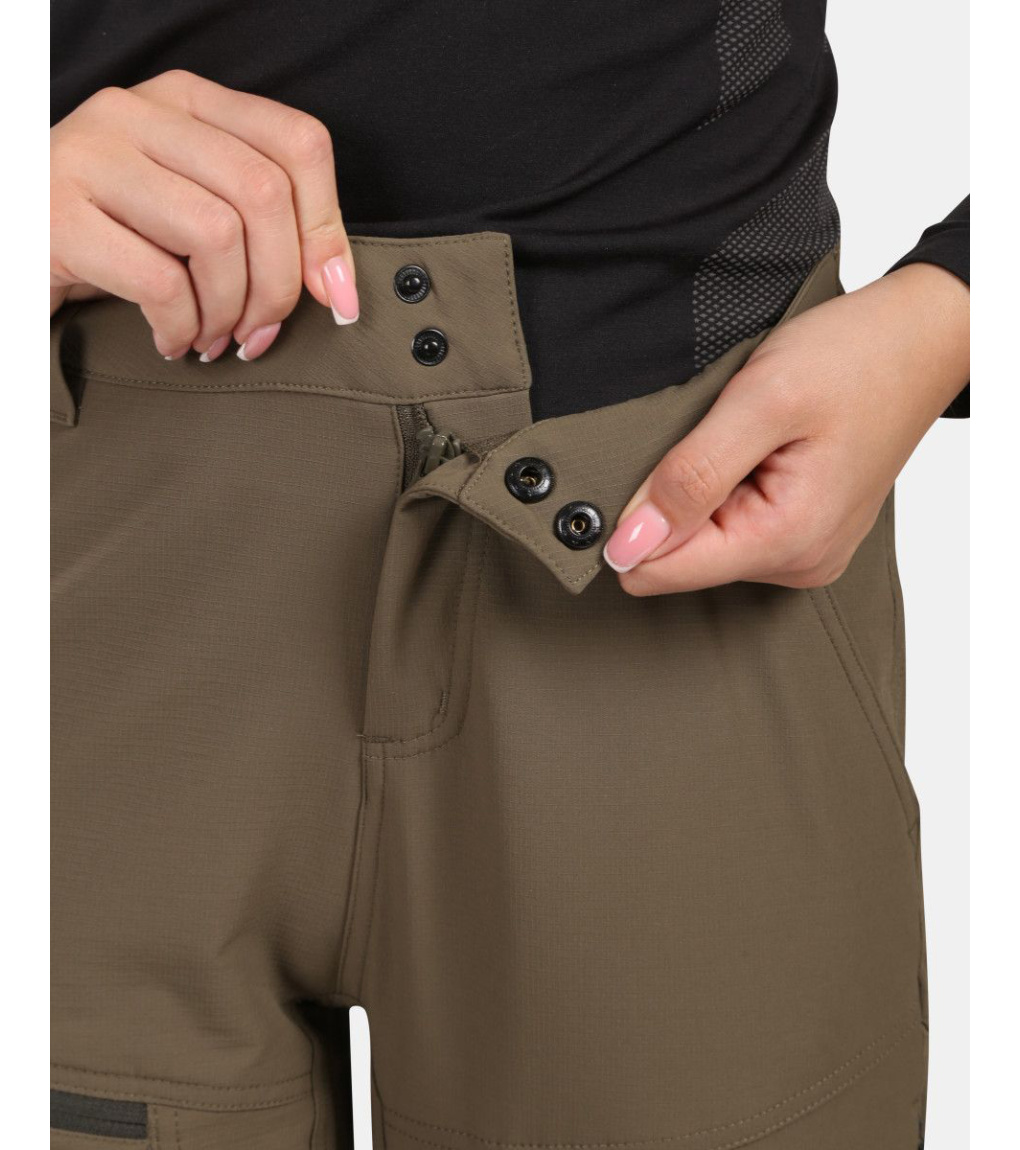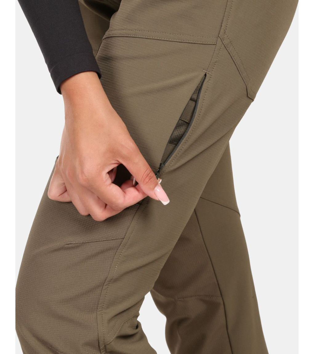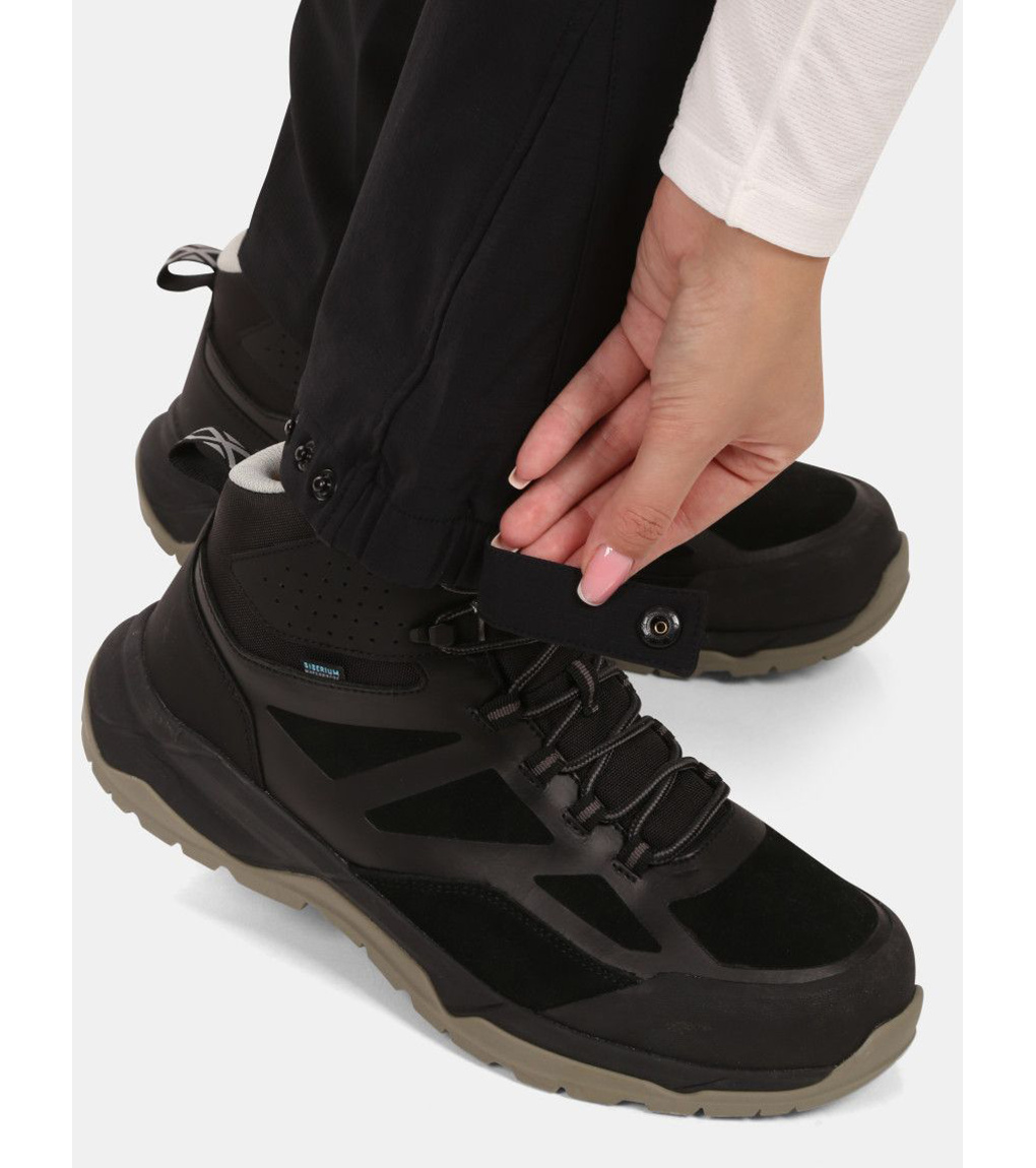 Kilpi VILLAIN-W z kategorie softshellových kalhot na outdoor, turistiku nebo třeba práci na zahradě. Vyrobeny z odolného tkaného softshellu s ripstop strukturou, která zvyšuje pevnost a odolnost vůči poškození. Elasticita materiálu v kombinaci s tvarovaným střihem a krokovým klínem zaručuje neomezenou volnost při pohybu. Kalhoty mají zapínání na kovové cvoky, elastický lem pasu a poutka na pásek. Praktickou vychytávkou jsou postranní ventilační otvory, díky kterým lze zlepšit odvětrávání a váš tepelný komfort. Kalhoty nabízí dvě kapsy a jednu zipovou kapsu na stehně. Lemy nohavic lze přizpůsobit outdoorové botě pomocí stahování na kovové cvoky a háčku sloužícímu k přichycení o tkaničku boty. Kritická místa na kolenou a vnitřní lemy nohavic jsou zesíleny dvojitou vrstvou materiálu odolnou vůči okopu a oděru. Máte-li rádi dobrodružství v jakékoliv podobě, neváhejte a doplňte šatník o naši novinku, kalhoty Kilpi VILLAIN-W, v neutrální černé barvě.