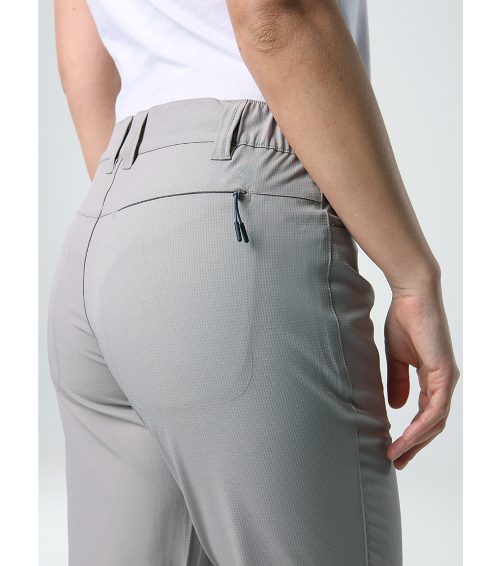 Šedohnědé dámské outdoorové kalhoty UZIKA bez membrány jsou lehoučké a prodyšné. Vyrobené jsou z polyesteru (93 %) a elastanu (7 %) ve střední gramáži 190 g/m2. Nenasávají vodu, rychle odvádí pot od těla a skvěle schnou. Díky elastanu jsou pružné, méně se mačkají a celý den dobře sedí na těle. Mají pohodlný volnější střih (Comfort Fit) s částečně elastickým pasem, dvě otevřené kapsy vpředu a jednu kapsu na skrytý zip vzadu. Budou se vám hodit na letní outdoorové aktivity, turistické výlety i cestování. Perte na 30 °C bez aviváže.