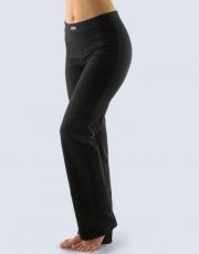 Rovné dlouhé kalhoty v základní délce, dámské šité sportovní prádlo. V pasovém kraji je zašitá širší pruženka. Legíny jsou jednobarevné. Na pasovém kraji je umístěné logo.