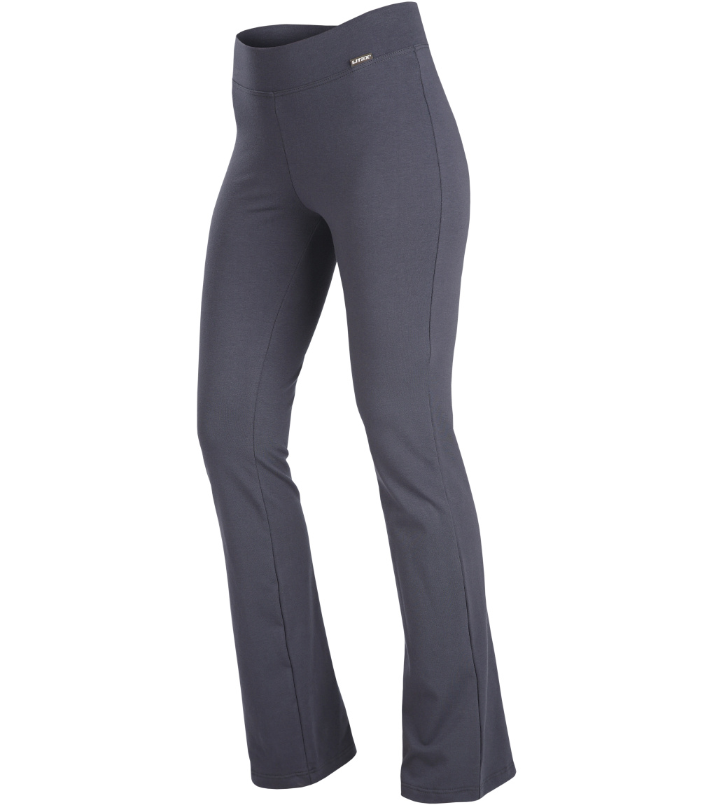 Dlouhé dámské legíny do zvonu. Široký pružný pásek s vloženou gumou.