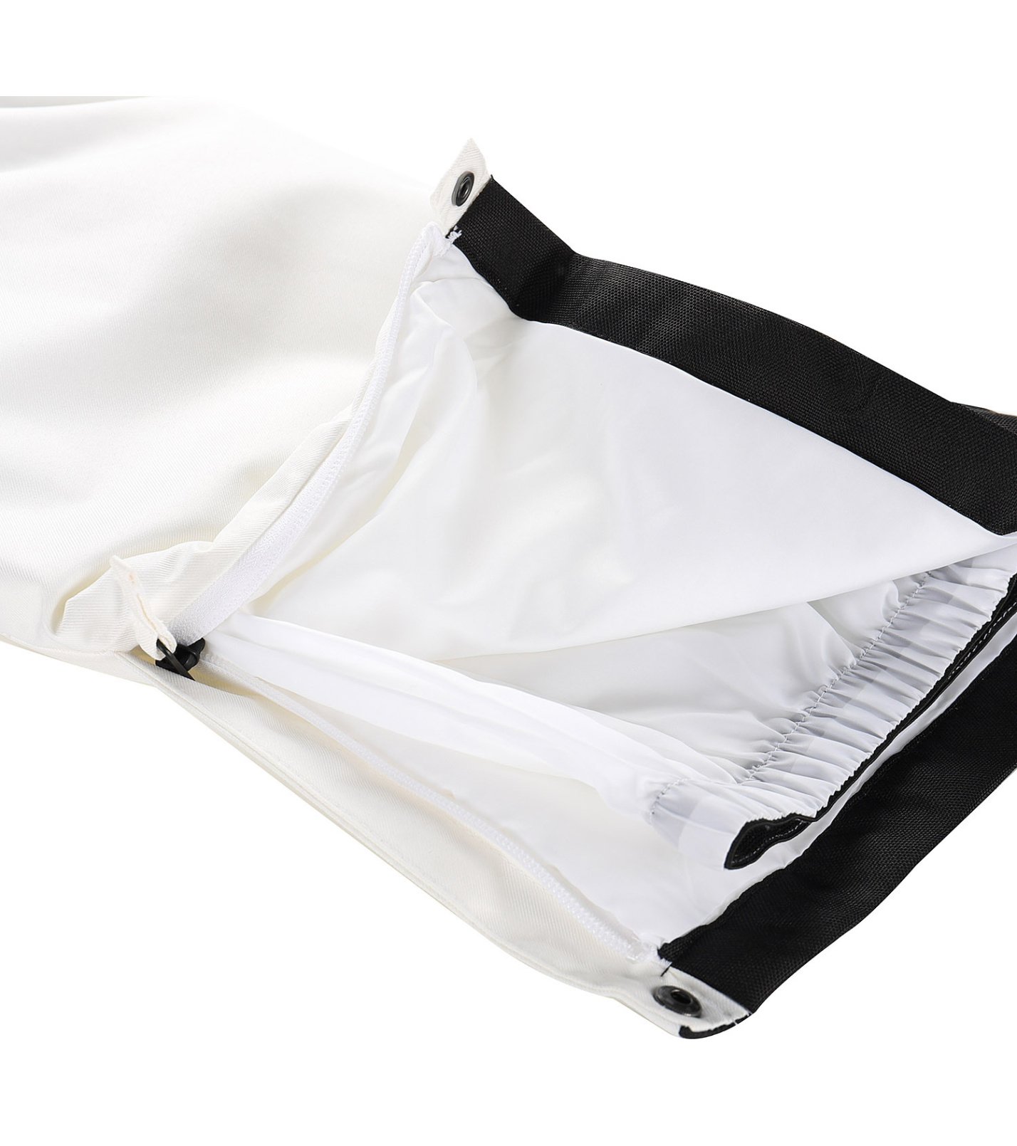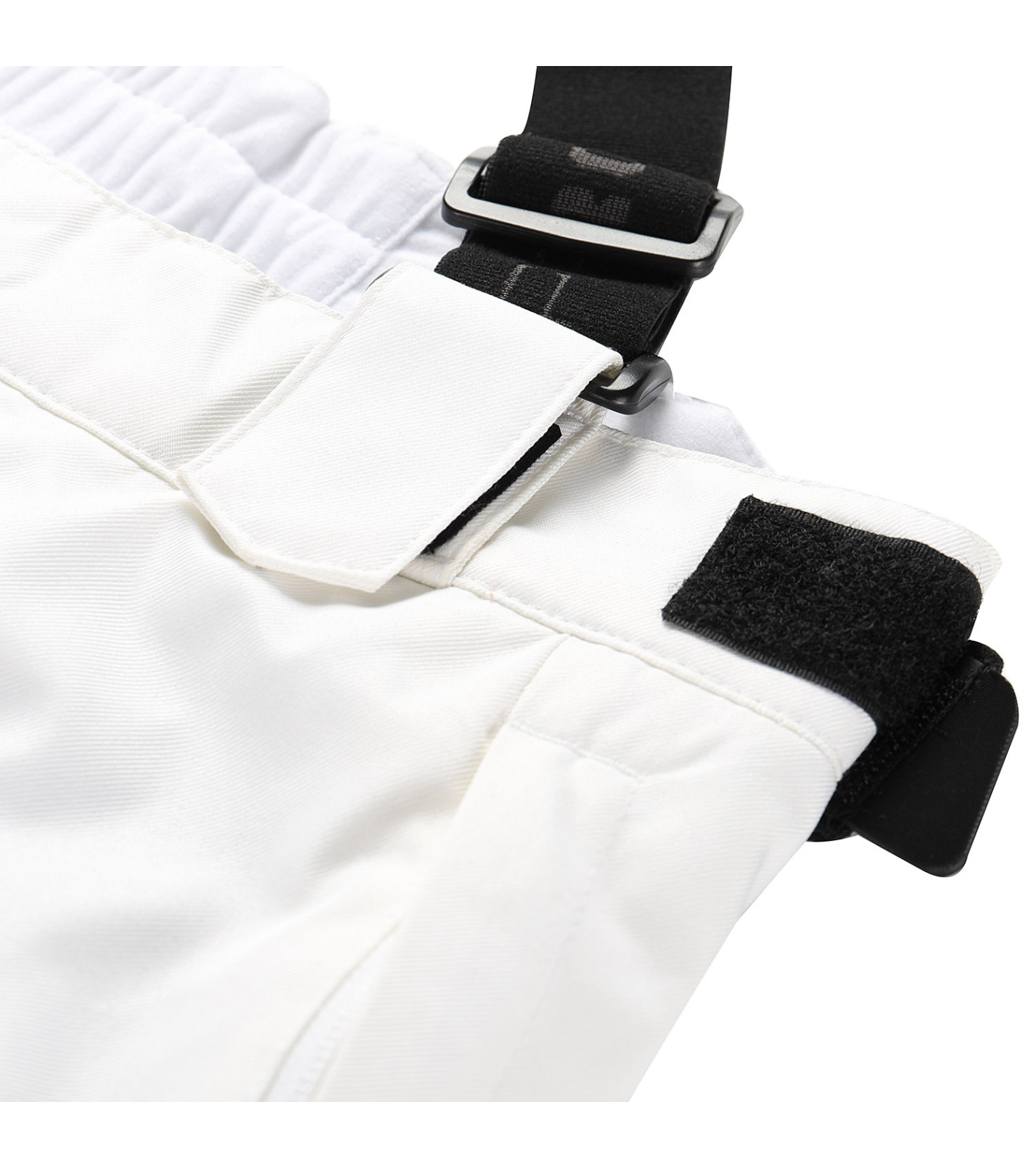 Kalhoty mají rozepínací nohavice ve spodní části, které usnadňují obouvání lyžáků, a zpevněné části pro odvětrávání na vnitřní straně stehen. Pas je nařasený do gumy v zadní části, regulovatelný a zvýšený, což zajišťuje pohodlí a ochranu proti chladu. Nastavitelné a odepínatelné šle poskytují další možnosti přizpůsobení, zatímco neodepínatelná sněhová manžeta chrání před sněhem. Střih je polopřiléhavý, což zajišťuje moderní vzhled a volnost pohybu. Anatomicky tvarovaná kolena a podlepené švy zvyšují pohodlí a ochranu.