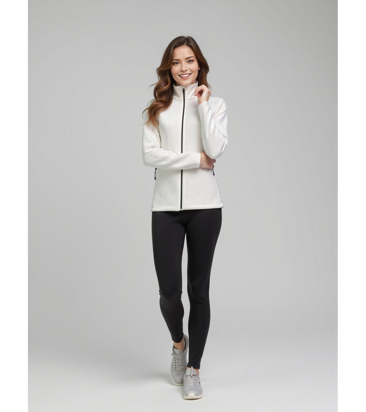 Dámská funkční mikina je navržena tak, aby spojovala pohodlí, funkčnost a moderní vzhled. Hlavní hřejivý strukturovaný materiál poskytuje příjemný tepelný komfort i v chladnějším počasí, zatímco kontrastní pružný a zároveň hřejivý materiál zajišťuje volnost pohybu a lepší přizpůsobení postavě. Polopřiléhavý střih elegantně zvýrazňuje ženskou siluetu, aniž by omezoval při sportu či volnočasových aktivitách.