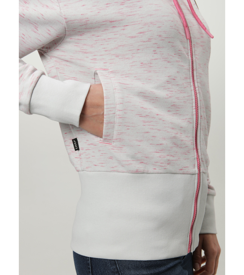 Dámská mikina LOAP ECNELA je navržena pro maximální komfort během celého dne. Komfortní střih a volnější provedení umožňují volný pohyb a příjemné nošení. Pevná kapuce podtrhuje sportovní vzhled a poskytuje ochranu před nepříznivým počasím. Dlouhý kostěný zip usnadňuje oblékání a umožňuje snadnou regulaci tepla. Rukávy i spodní okraj jsou zakončeny náplety, které pomáhají udržet tvar a zajišťují, že mikina dobře sedí. Dvě kapsy jsou praktickým řešením pro uložení drobností nebo zahřátí rukou. Jednoduchý design umožňuje snadné kombinování s dalším oblečením.