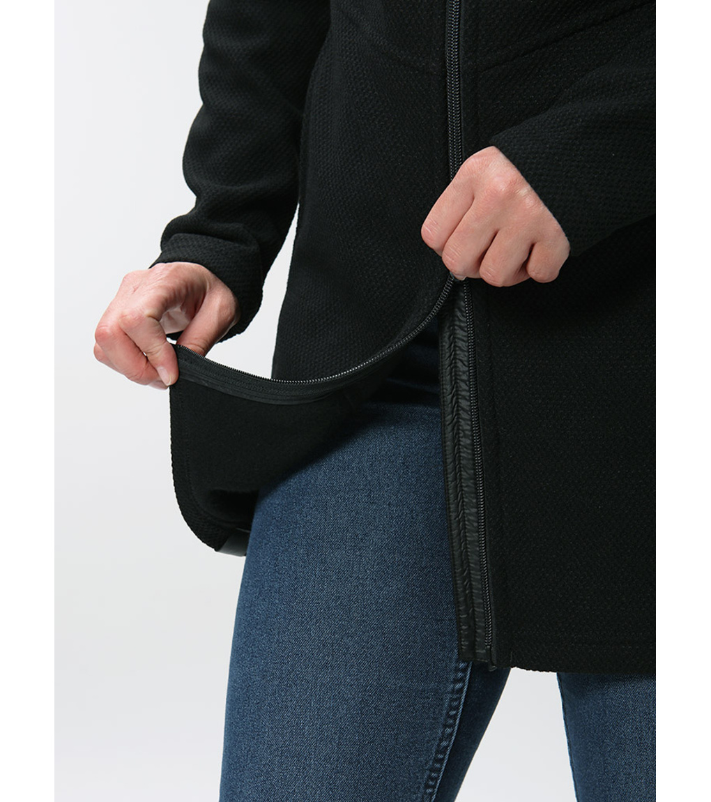 Dámský sportovní svetr s kapucí je ideální pro aktivní ženy, které hledají styl i funkčnost v jednom. Pevná, nastavitelná kapuce a praktický spirálový dvoucestný zip zajišťují pohodlí i snadné odvětrání. Dvě vnější kapsy jsou ideální na drobnosti, klasický střih bez stahování ve spodním okraji přispívá k volnosti pohybu i modernímu vzhledu. Perfektní pro sport, výlety i volný čas.