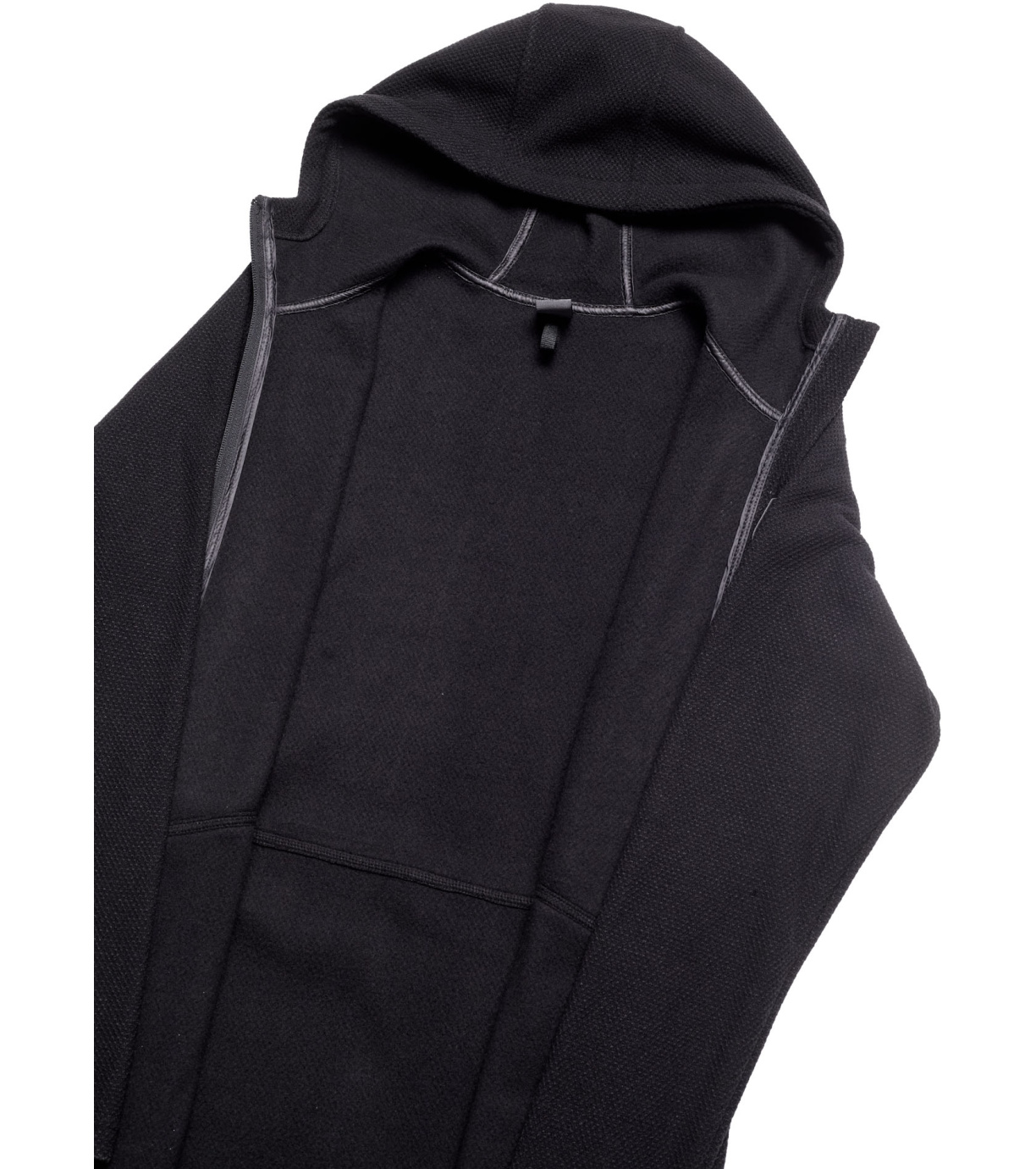 Silná oboustranně počesaná pletenina (100 % polyesteru) s jemnou lícní vazbou. Ideální materiál na druhou vrstvu oblečení (mikinu, svetr).