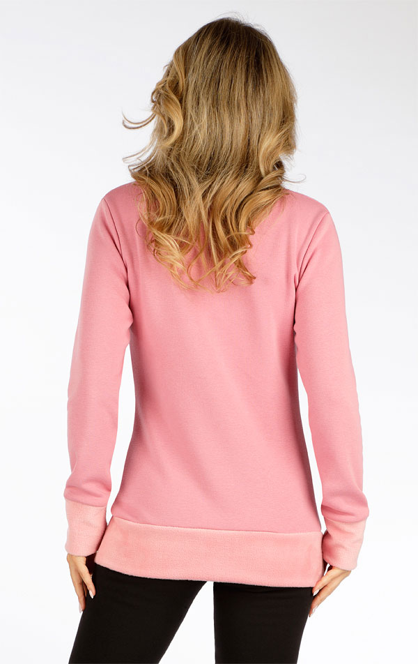 Efektivní otočení příjemného vyššího počesu na lícovou stranu u stojáku, manžety u rukávu a v délce mikiny. Mikinový úplet s vnitřním vyšším počesem je velmi teplý a příjemný na těle. Díky bavlně a elastanu je krásně měkký a pružný.