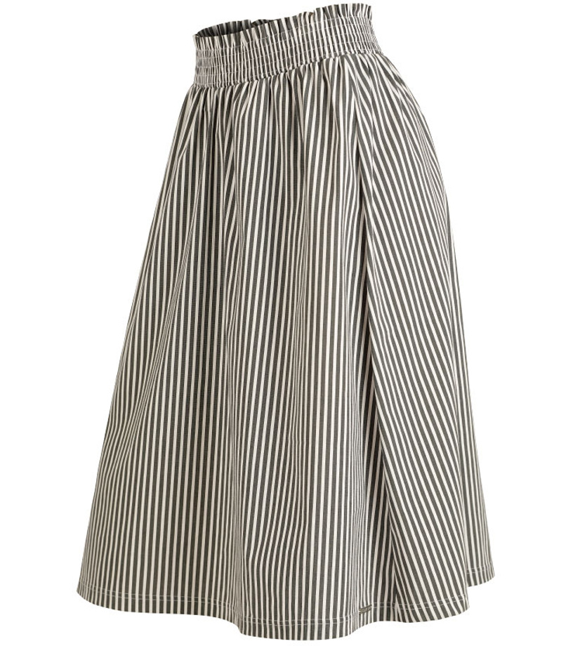 Sportovně elegantní dámská sukně po kolena s pružným pasem. Materiál s vysokým podílem bavlny, která v průběhu nošení představuje záruku prodyšnosti a vysoce komfortního pocitu. Výborně kombinovatelný a praktický kousek, který skvěle doladí Váš každodenní outfit. Délka sukně cca 60 cm.