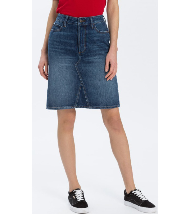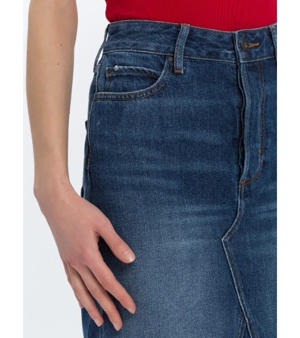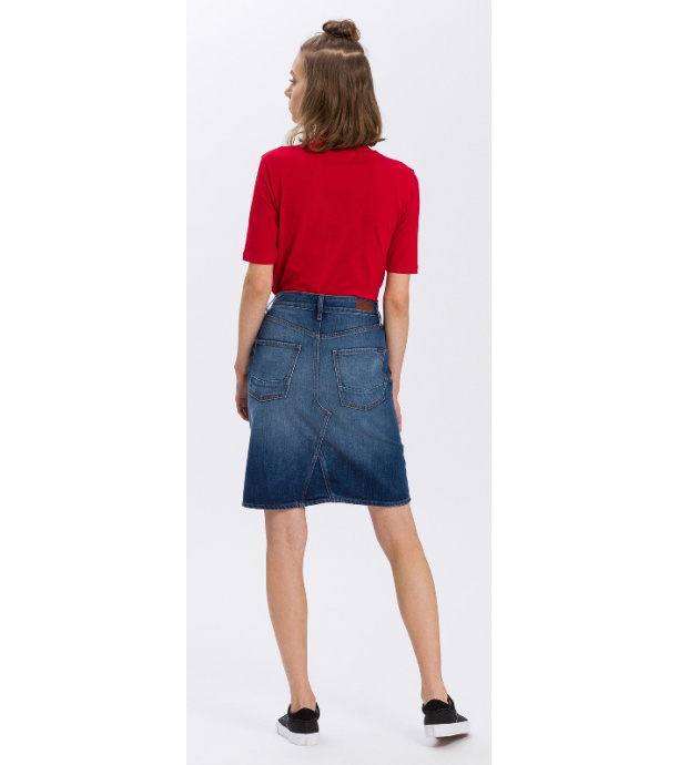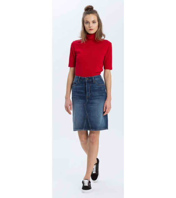 Džínová sukně Ellie v úzkém střihu a designu s 5 kapsami nadchne kontrastními švy a poutky na opasku. Obyčejné bílé tričko a módní tenisky jsou dokonalou kombinací pro ženský ležérní styl.