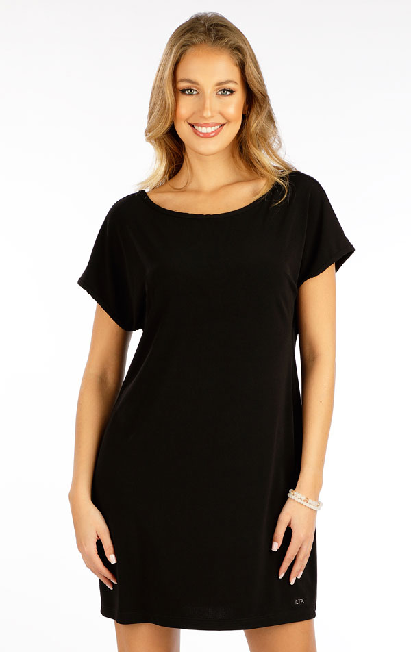 Tunika dámská. Dámská tunika s krátkým rukávem. Rovný střih s hlubokým výstřihem do V na zadním díle. Velmi splývavý a pružný nemačkavý materiál Vám zajistí maximálně příjemný pocit při nošení. Možné nosit i jako plážovou tuniku. Délka tuniky cca 85 cm.
