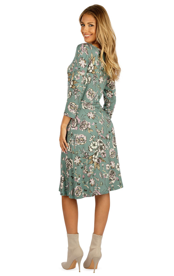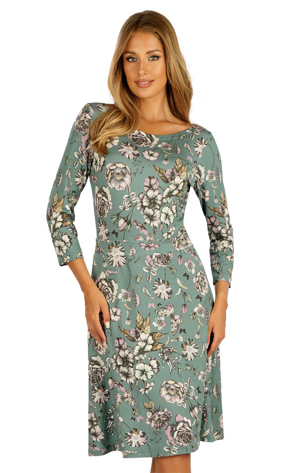 Dámské šaty s 3/4 rukávem. Lodičkový výstřih. Členěný střih s pružným páskem v pase a rozšiřující se sukní pro zvýraznění ženské siluety. Viskózový materiál je pružný, tvarově stálý a velmi příjemný na těle. Působivý květinový tisk v přírodních barvách Vám dodá neodolatelný šarm. Délka šatů cca 95 cm.