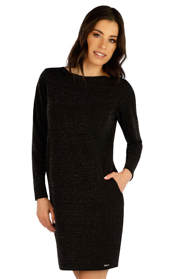 Kulatý výstřih. Praktické boční kapsy. Elegantní úplet se stříbrným vláknem je pružný a tvarově stálý. Je vhodný nejen na běžné nošení, ale i k slavnostní příležitosti. Délka šatů cca 90cm.