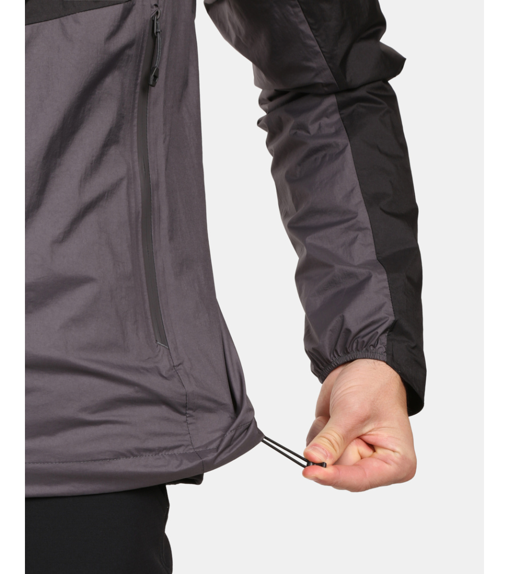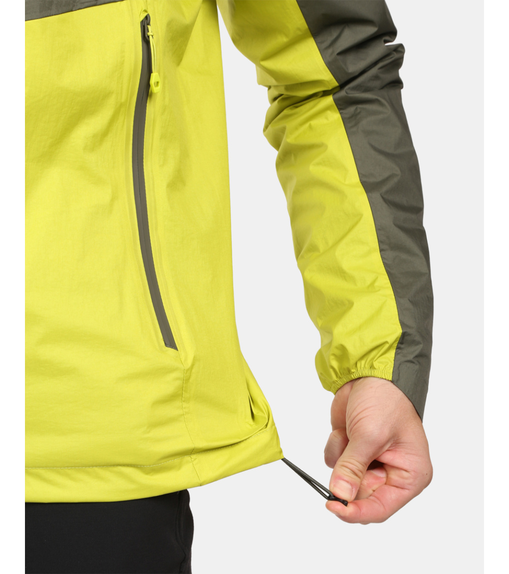 Bunda je vyrobena z extrémně lehkého membránového materiálu SIBERIUM 30 000 2.5L, který poskytuje vodní sloupec 20 000 mm a prodyšnost 30 000 g/m²/24 h, což spolehlivě chrání před deštěm i větrem. Praktické detaily, jako je nastavitelné kapuce s vyztuženým kšiltem a vysoký límec, zajišťují ochranu hlavy, krku a brady i v nepříznivém počasí.