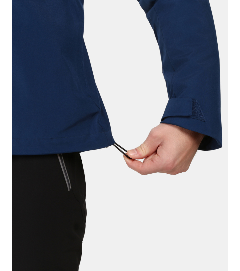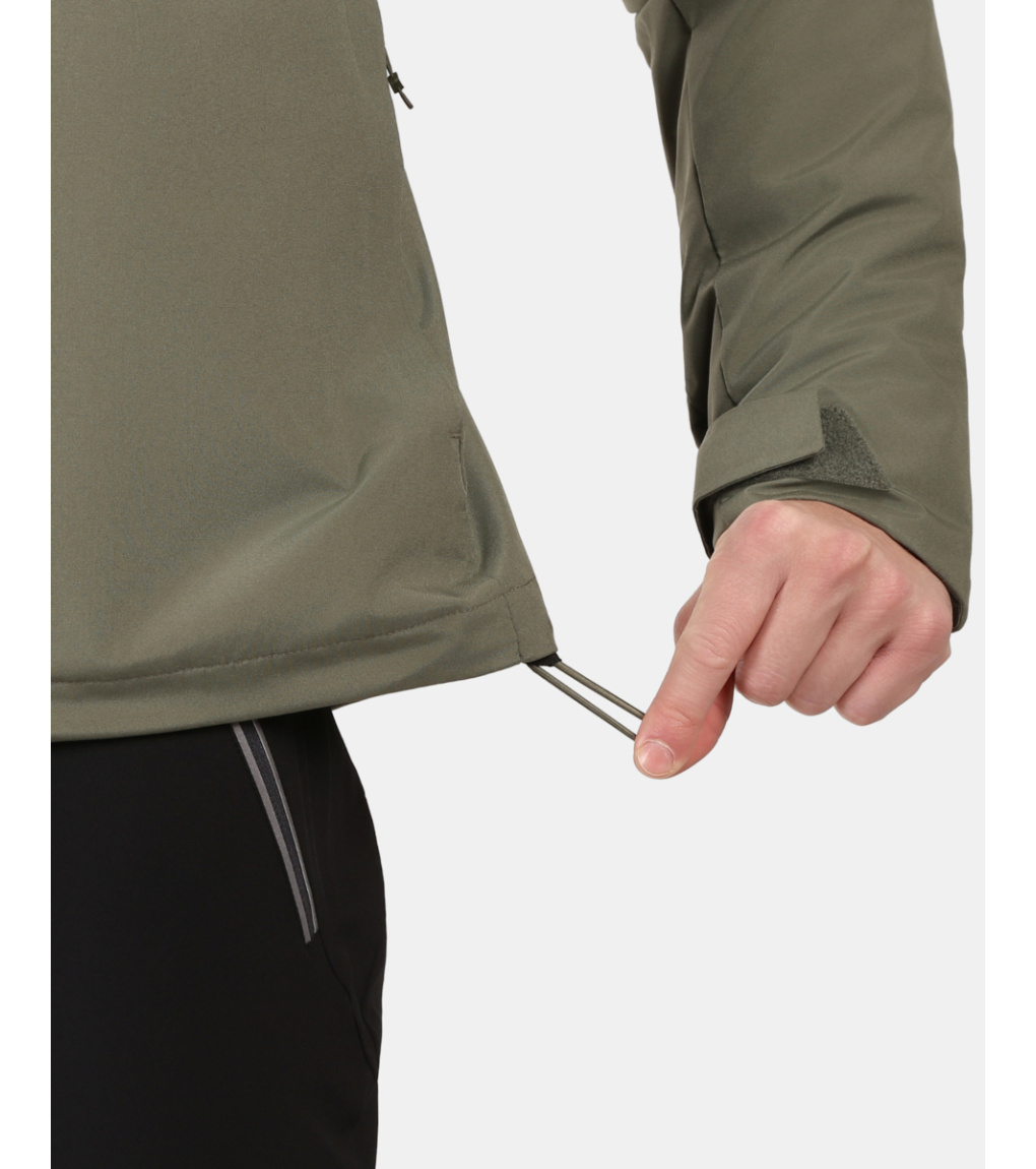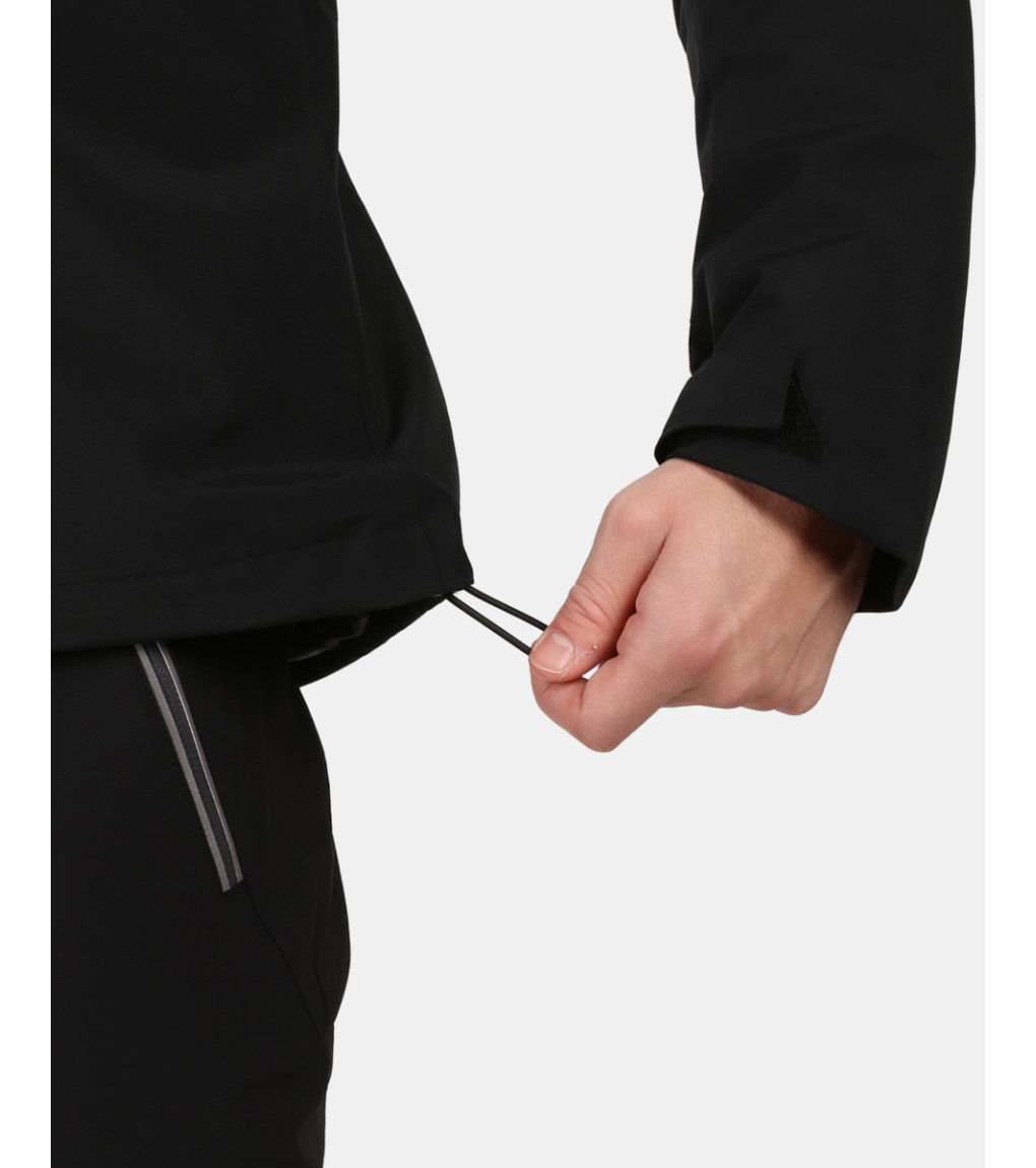 Bunda má pevnou kapuci nastavitelnou šňůrkou, vysoký límec chránící krk a boční ventilační zipy, které zajistí odvětrání při intenzivní aktivitě. Manžety se suchým zipem a spodní lem se stahovací šňůrkou umožňují perfektní přizpůsobení, zatímco hlavní kapsy, náprsní kapsa a vnitřní kapsa poskytují dostatek prostoru pro nezbytnosti.
