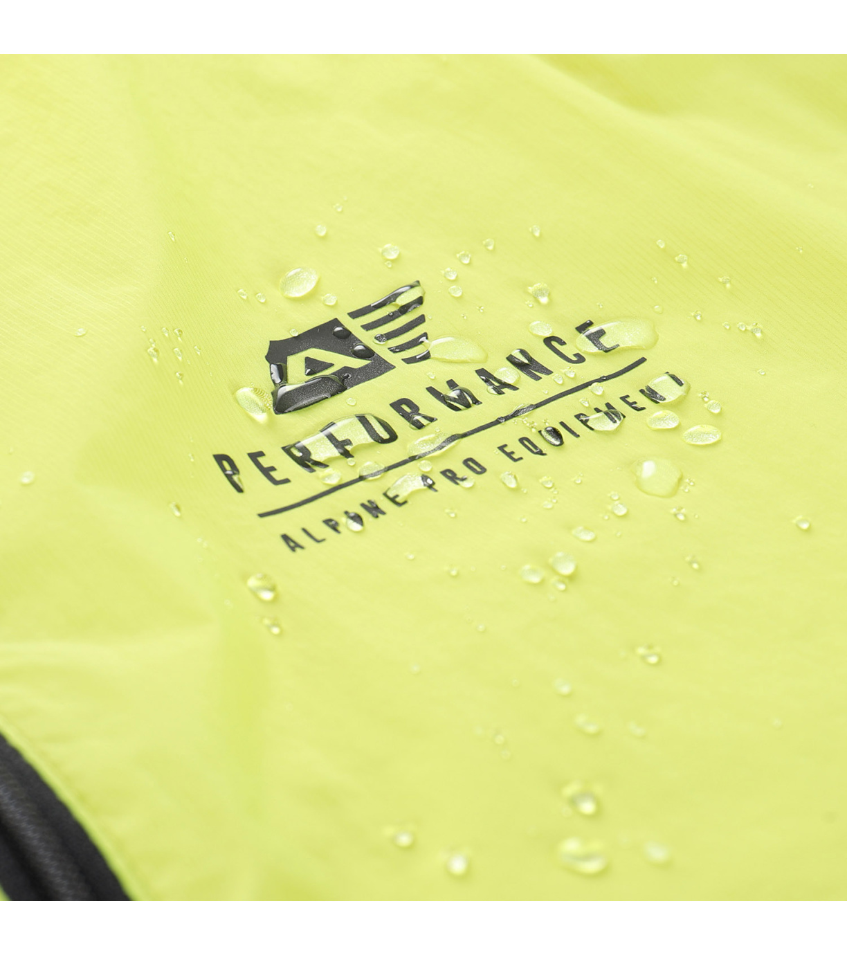 Prodyšnost materiálu (breathability) činí 10 000 g/m2/24h a nepromokavost 10 000 mm vodního sloupce (water column).