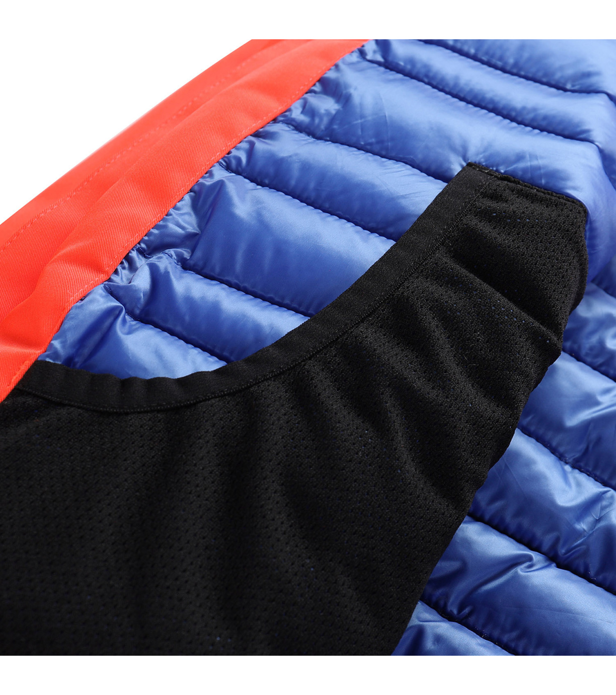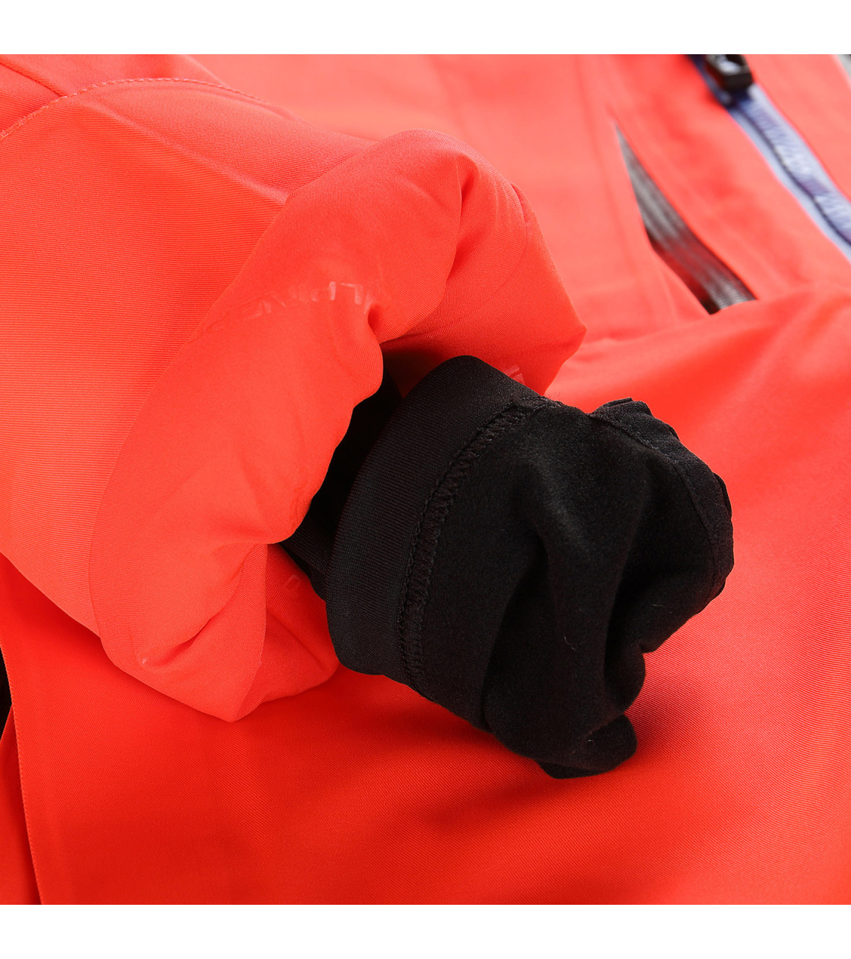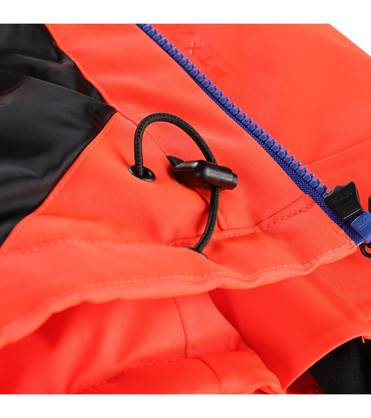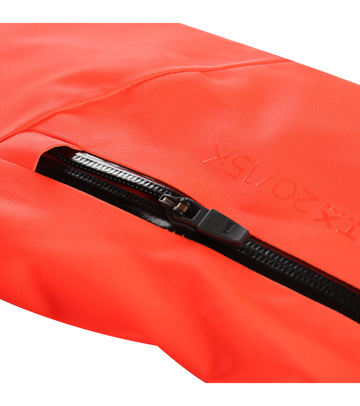 Pro maximální pohodlí na svahu nechybí odepínatelný sněhový pás, prodloužená zadní část se stahovací gumičkou a praktické kapsy – celkem 7: kapsa na skipas na rukávu s voděodolným zipem, dvě přední kapsy na zip, vnitřní zipová kapsa, kapsa ze síťoviny na lyžařské brýle a další úložné prostory na drobnosti. Design doplňuje silikonový potisk na předním díle a na rukávu.