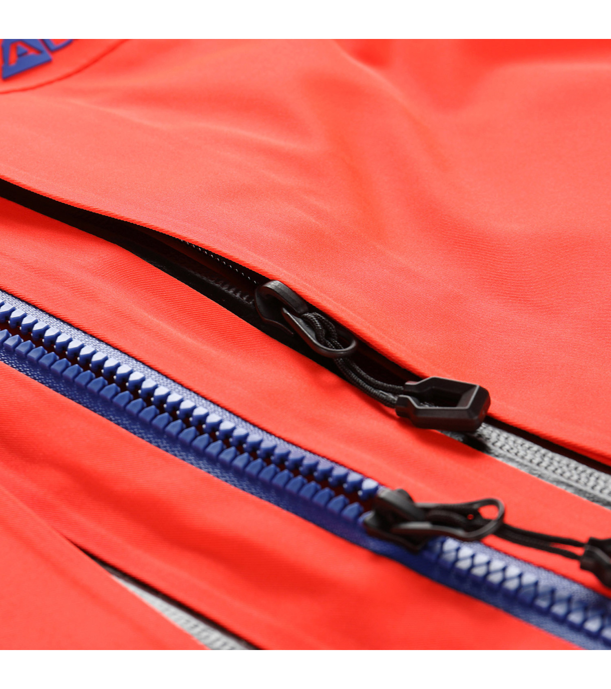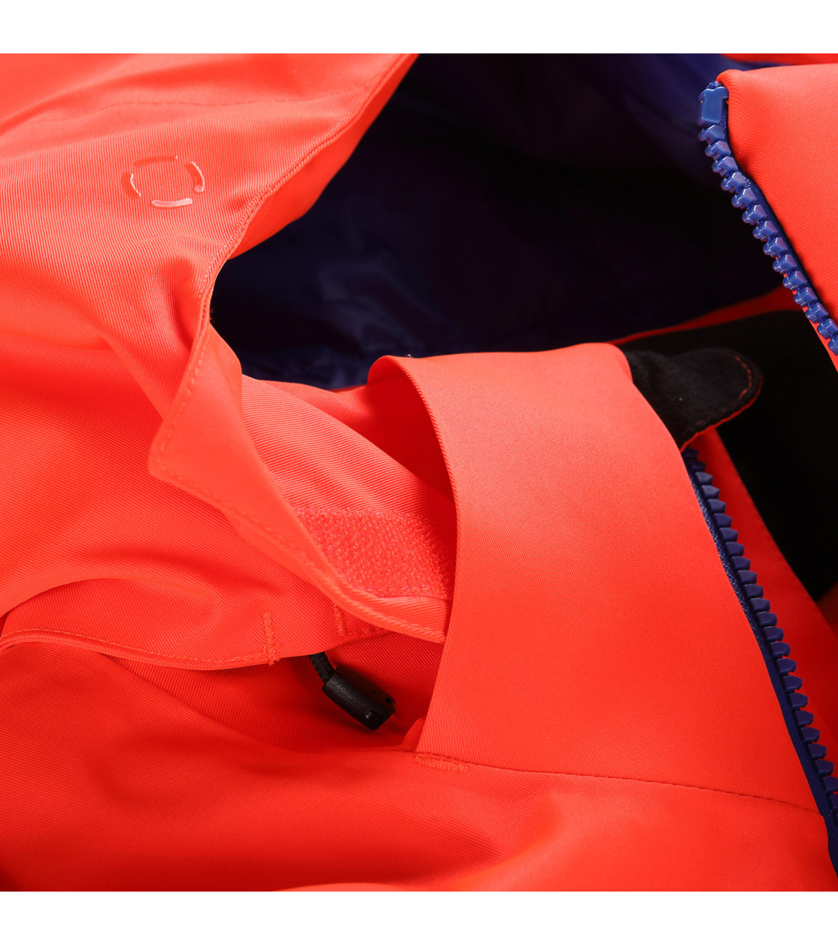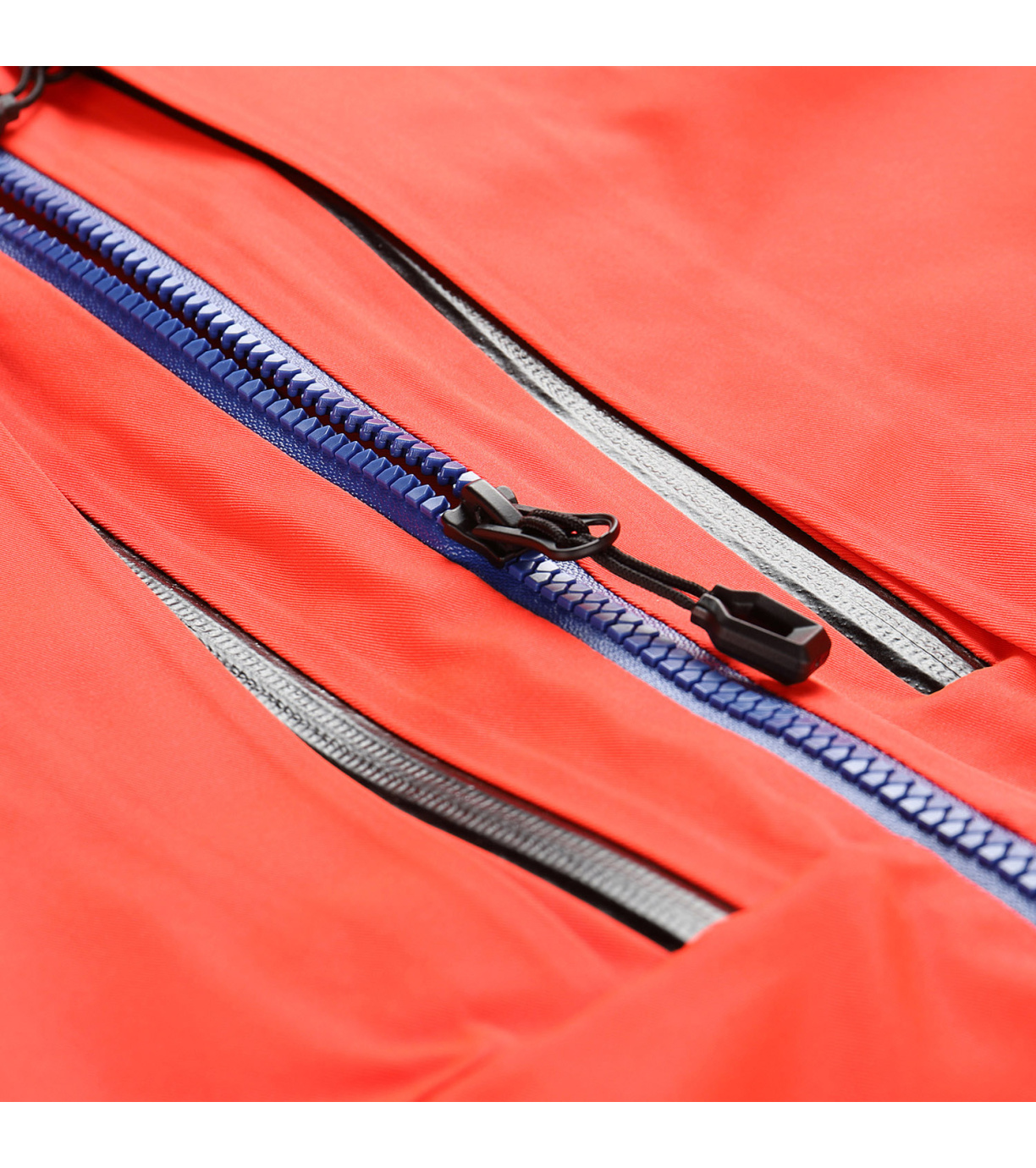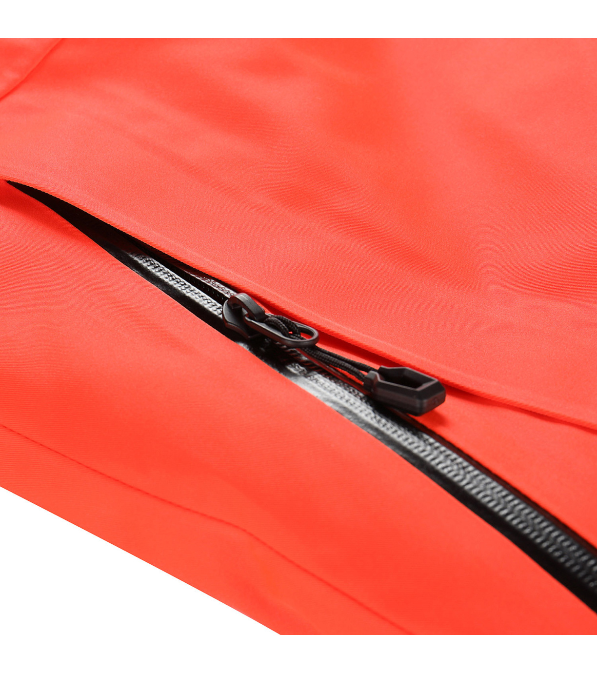 Bunda má přiléhavý střih se zcela podlepenými švy pro dokonalou nepromokavost. Praktická odepínatelná kapuce se stahováním chrání před větrem a sněhem, hlavní kontrastní voděodolný zip je doplněn o delší taháčky pro snadné ovládání i v rukavicích. Anatomicky tvarované rukávy jsou vybaveny stahováním pomocí manžety na suchý zip a vnitřní elastickou manžetou s otvorem na palec. V podpaží je integrované odvětrávání s voděodolnými zipy, které umožňuje regulaci teploty při vyšší zátěži.