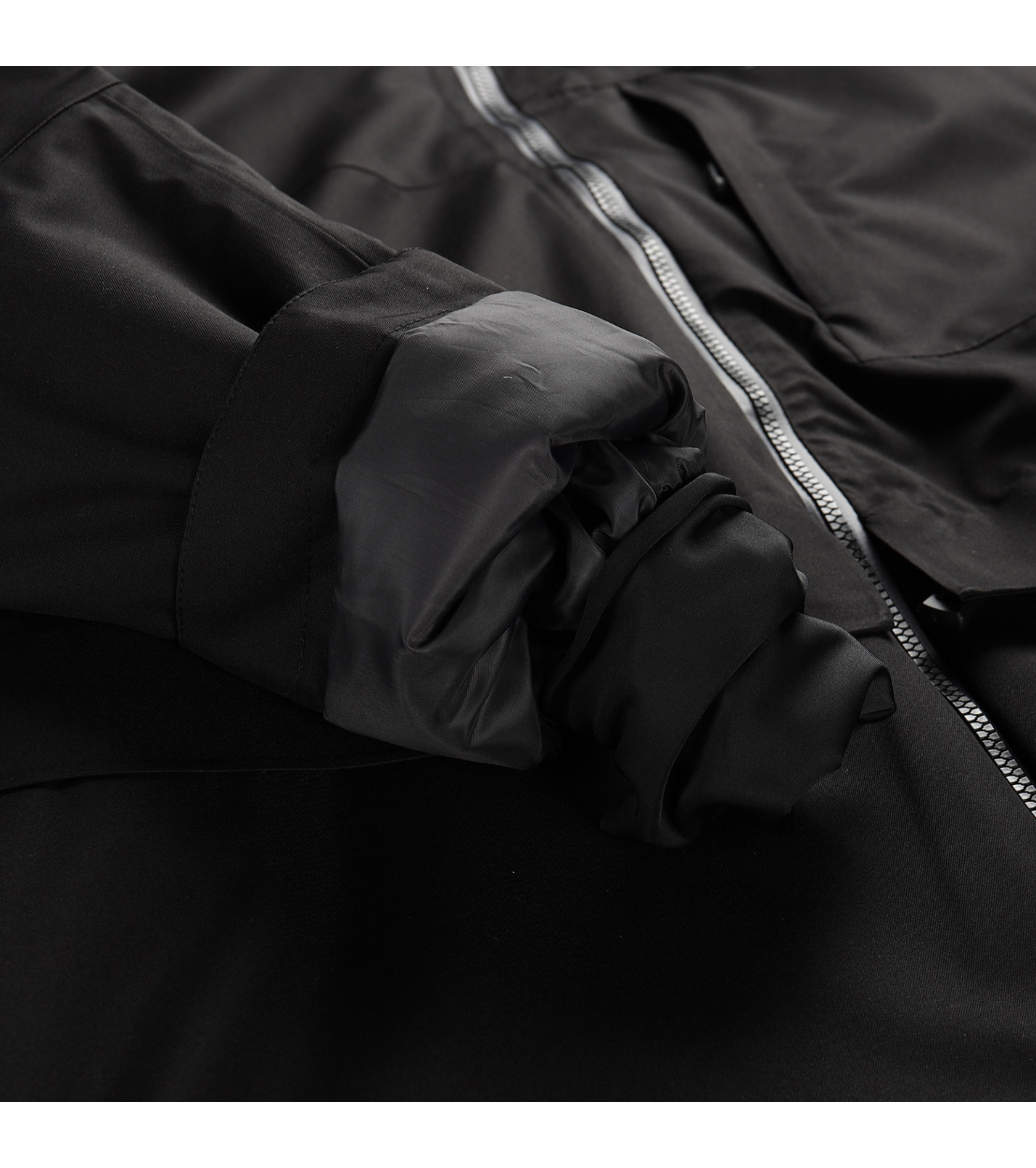 Odepínatelná sněhová manžeta, která zabraňuje pronikání sněhu pod oděv. Ve spodní části je našita elastická protismyková guma.