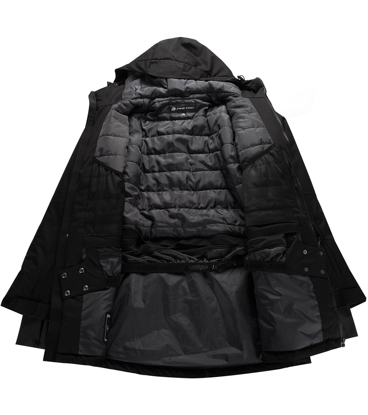 Funkční design zahrnuje odvětrávání se zipy v podpaží, prošívanou podšívku a odepínatelný sněhový pás, který vás ochrání před vniknutím sněhu. Rukávy jsou vybaveny elastickými manžetami s otvory na palce a možností stahování suchým zipem, což poskytuje extra ochranu a pohodlí. Spodní část bundy je vzadu prodloužená a vybavená regulací šířky stahováním gumičkou, díky čemuž se přizpůsobí vašim potřebám.