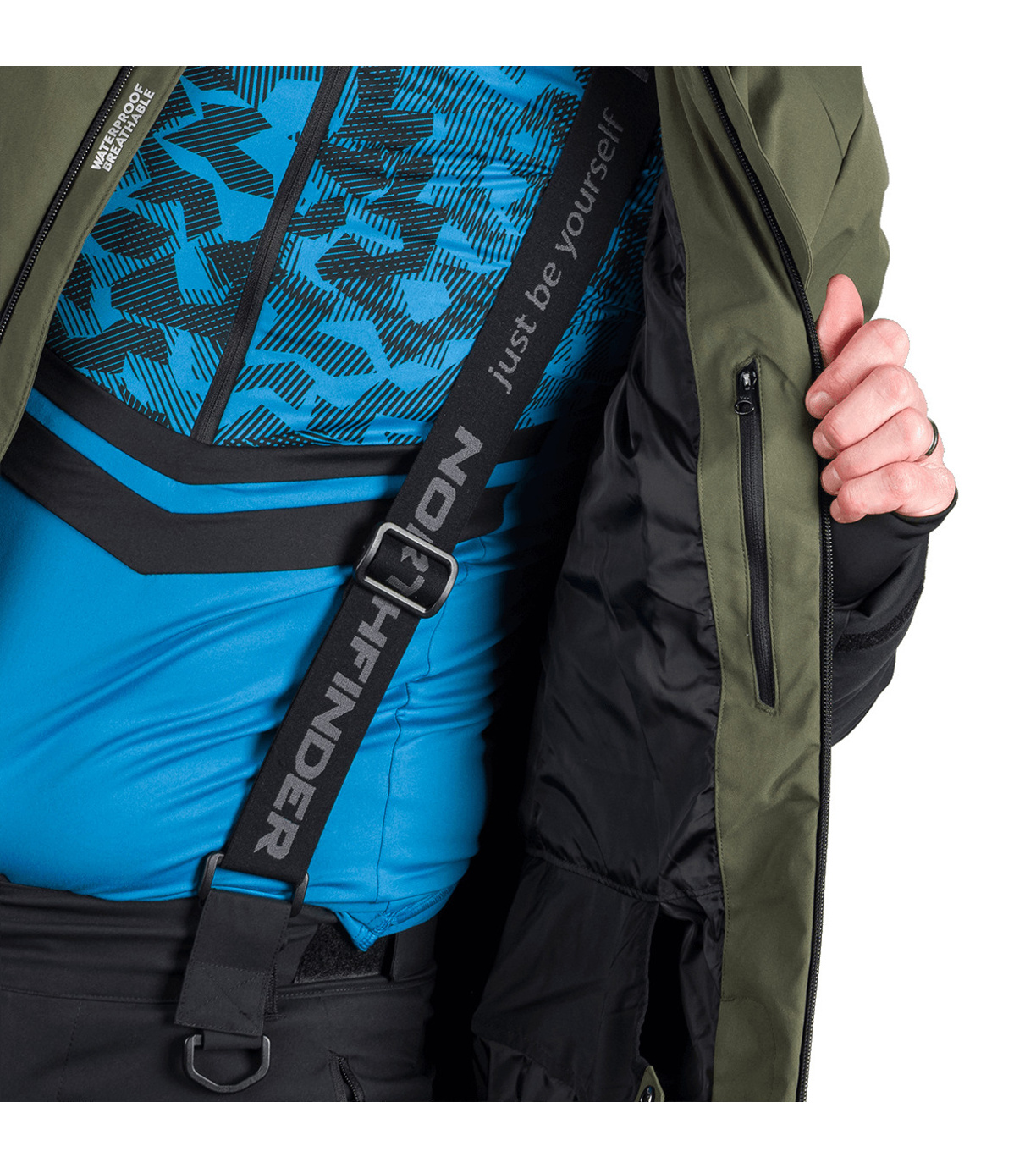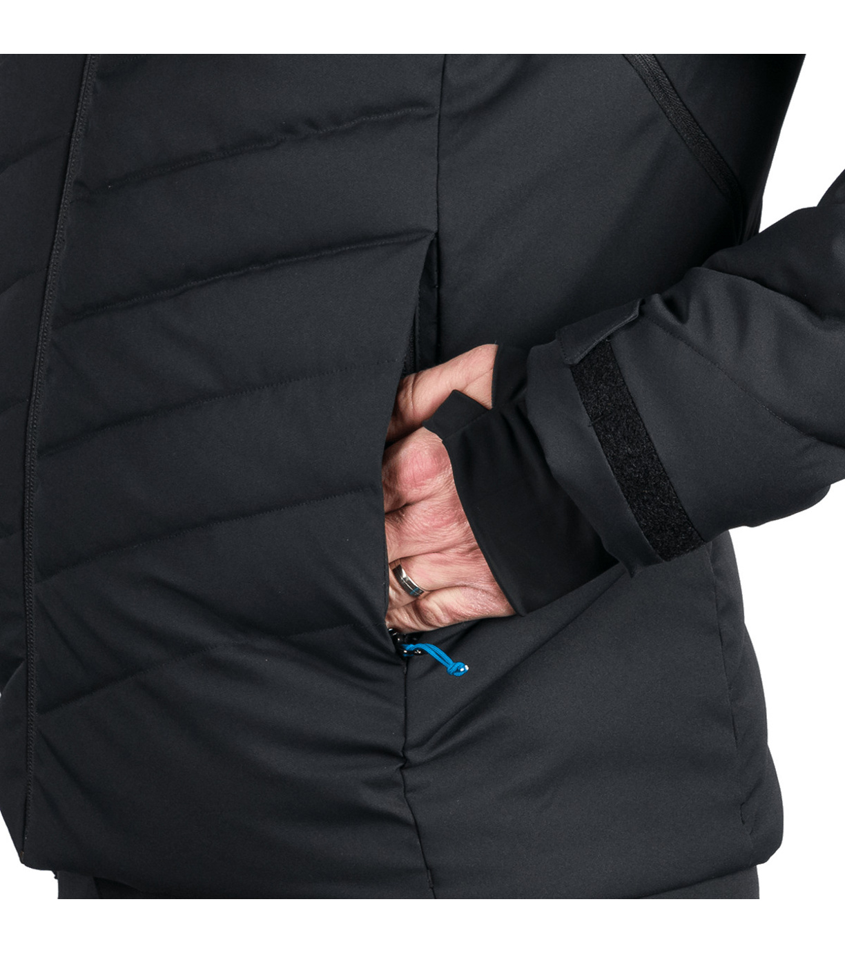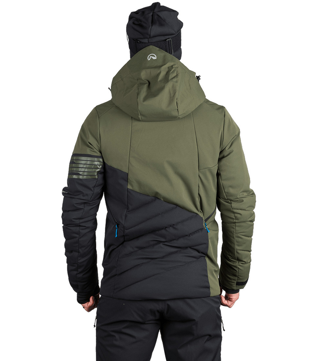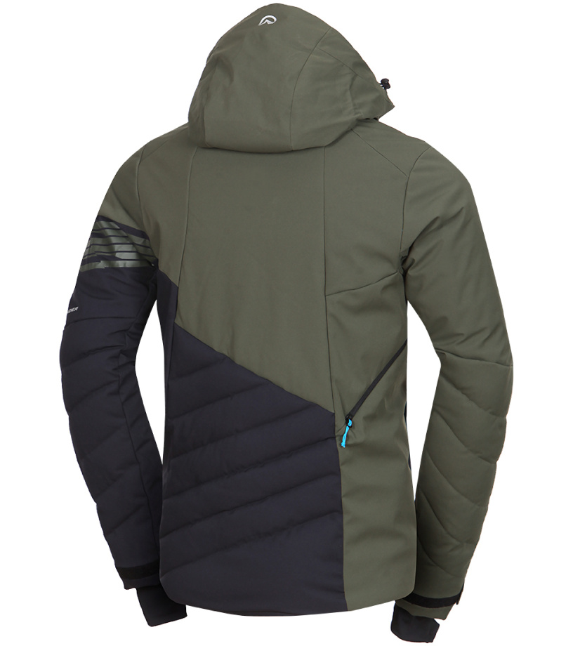 Tato zateplená lyžařská bunda vás nikdy nenechá v nouzi, ať už se vrhnete do sjezdovky nebo se vydáte na túru na běžkách. Je určena do zimy, chladu, sněžení a větru. Dvojvrstvový materiál je vodoodpudivý a větruodolný s parametry vodního sloupce a prodyšnosti 10 000 mm H₂O / 10 000 g/m²/24 h. Materiál je navíc opatřený ekologickou vodoodpudivou úpravou bez použití PFC látek. Bunda disponuje vším, co budete při lyžování potřebovat: sněhovým pásem, dvěma bočními kapsami na zip, vnitřní kapsou na brýle, vnitřní náprsní kapsou, vnějšími náprsními kapsami, kapsou na rukávu na skipas. Sněhový pás a zipy podšité látkou proti profouknutí dodatečně chrání proti chladu a zvyšují tím váš tepelný komfort. Odnímatelná 3D kapuce je plně nastavitelná. Bunda má také nastavitelný obvod dolního okraje. Zipy od známého výrobce YKK® jsou zárukou dlouhé a bezproblémové funkčnosti výrobku.