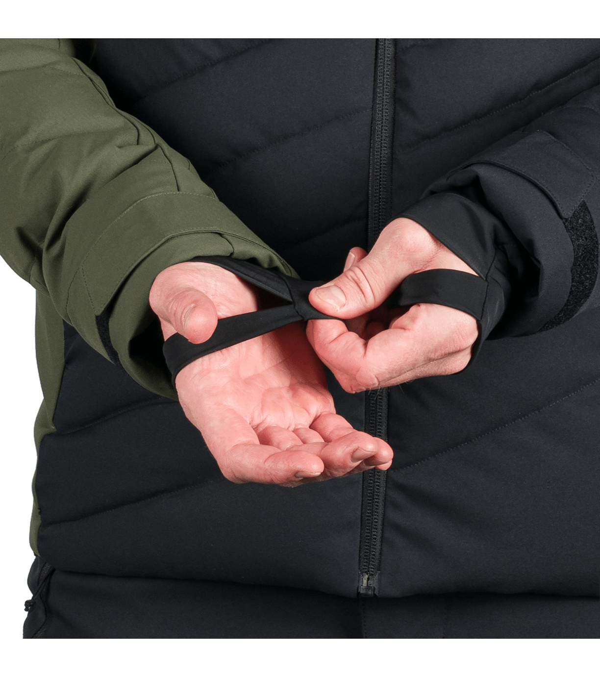 Všitá ochraná sněhová manžeta, která zabraňuje pronikání sněhu pod oděv. Ve spodní části je našita elastická protismyková guma.