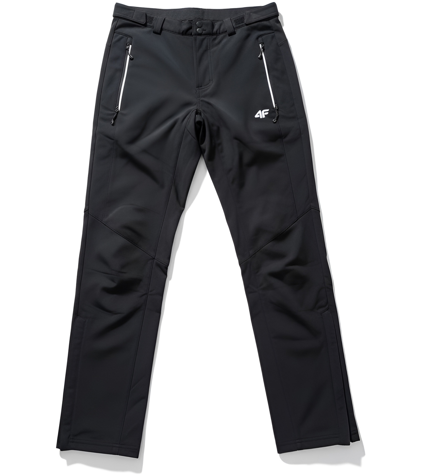 Pánské outdoorové softshellové kalhoty 4F s technologií Aquatech 3000 a vodoodpudivou úpravou DWR. Třívrstvý softshellový materiál zaručuje odolnost proti větru i vlhkosti, zároveň zůstává prodyšný a pružný pro maximální komfort při pohybu. Kalhoty mají dvě kapsy na zip, nastavitelný pas a anatomicky tvarovaná kolena pro lepší volnost pohybu.