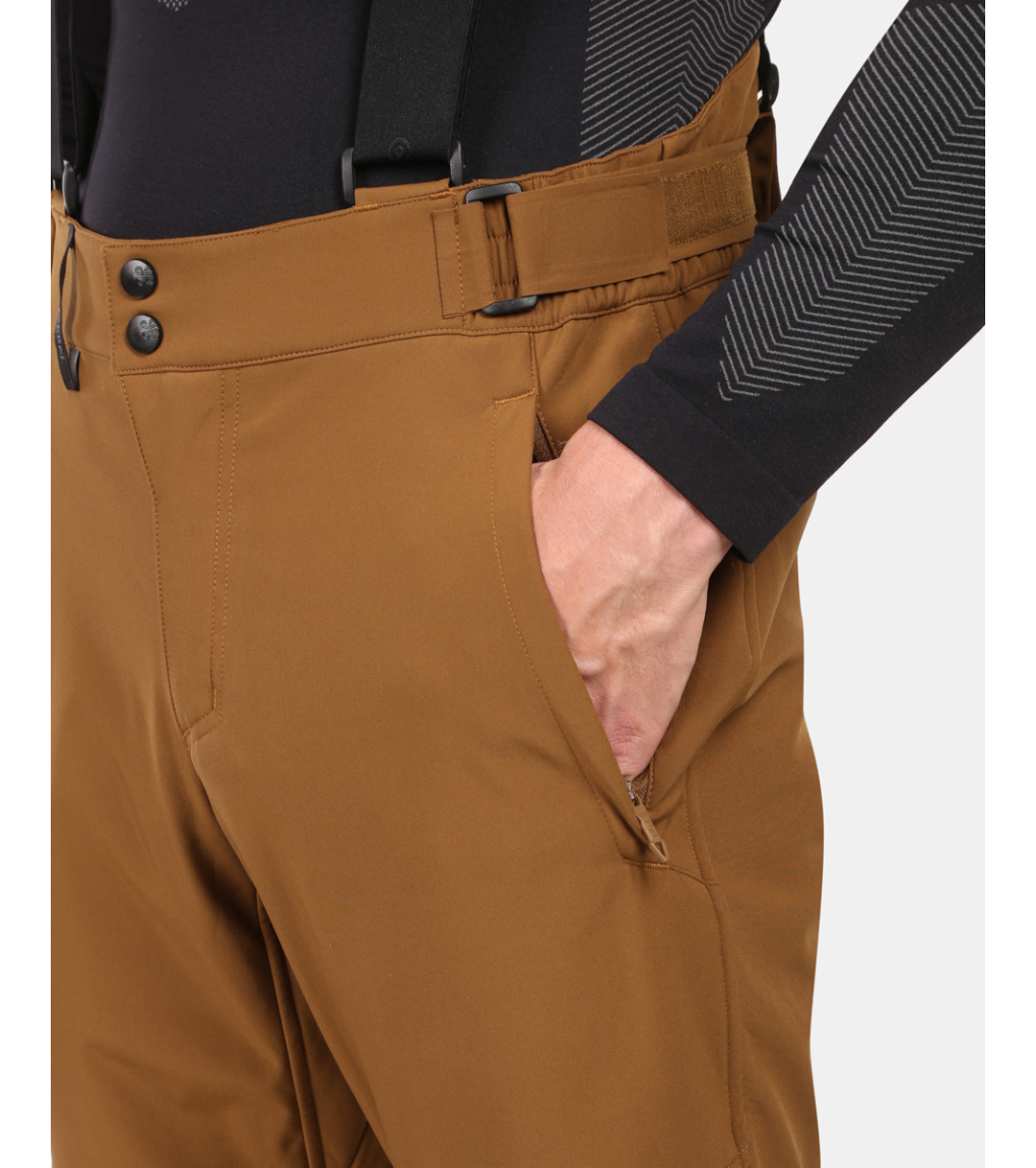 Praktické provedení zahrnuje elastický pas se stahováním na suchý zip a odepínací, nastavitelné šle, které umožňují perfektní přizpůsobení. V zipových kapsách nechybí ani užitečná klíčenka. Vnitřní protisněhové manžety s gumou se snadno natáhnou přes lyžařskou obuv a chrání před vniknutím sněhu.