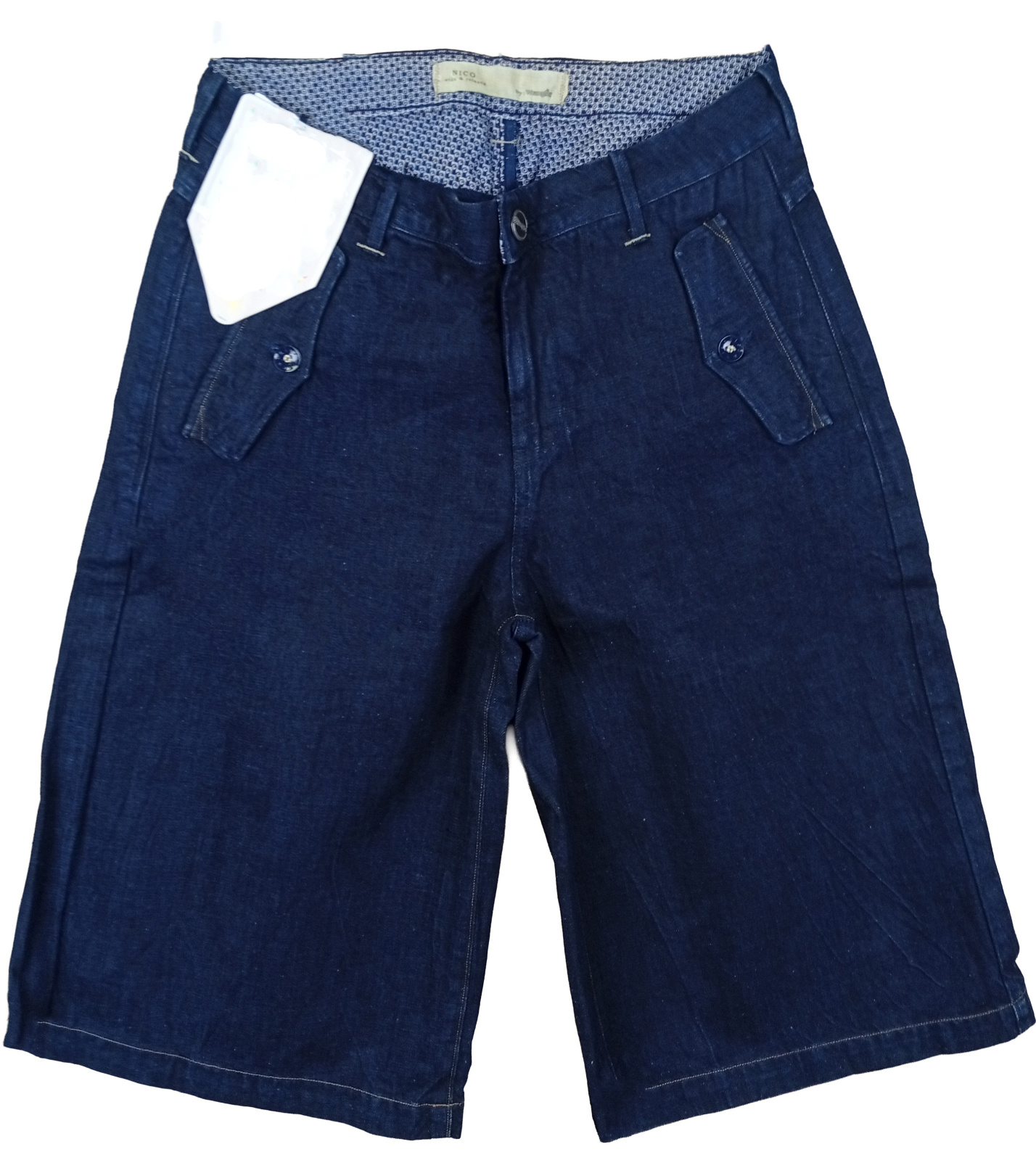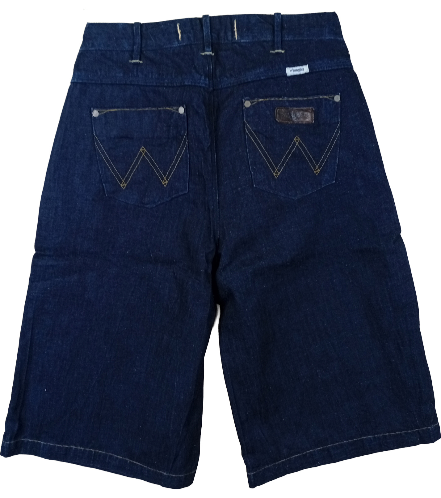 Přední kapsy jsou navrženy s klopami na knoflík, což dodává kraťasům originální vzhled a praktičnost. Zadní kapsy zdobí kontrastní prošití ve tvaru „W“ a kožený štítek Wrangler – charakteristický znak značky.