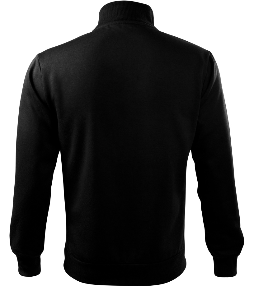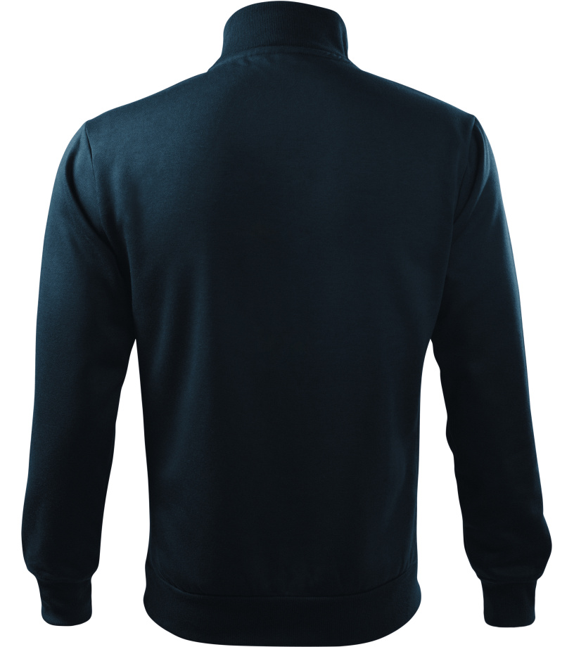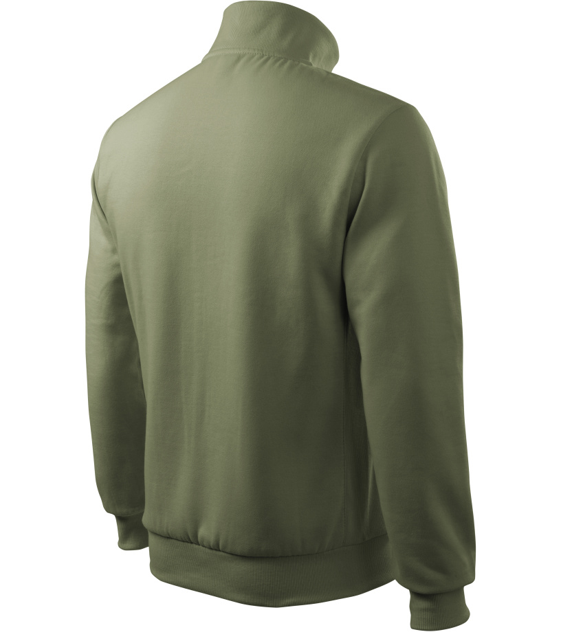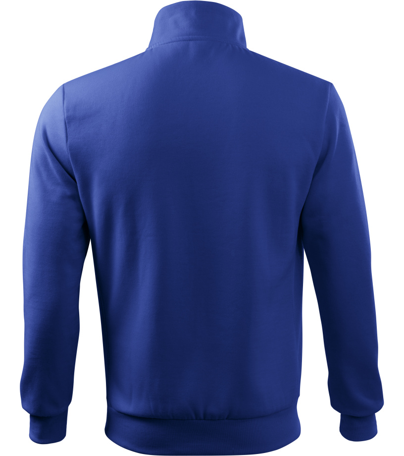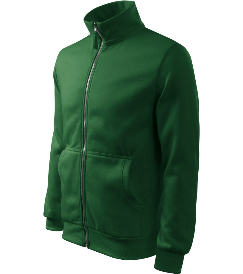 Pánská mikina rovného střihu s bočními díly vhodná pro potisk a výšivky má celopropínací kovový zip, stojáček a boční díly z žebrového úpletu 2:2 s 5 % elastanu, vnitřní průkrčník začištěn kontrastní páskou, nakládané kapsy ve stylu klokanky, vnitřní stranu počesanou a dolní lem, manžety a lemy kapes z žebrového úpletu 2:2 s 5 % elastanu.